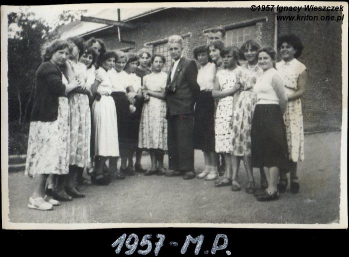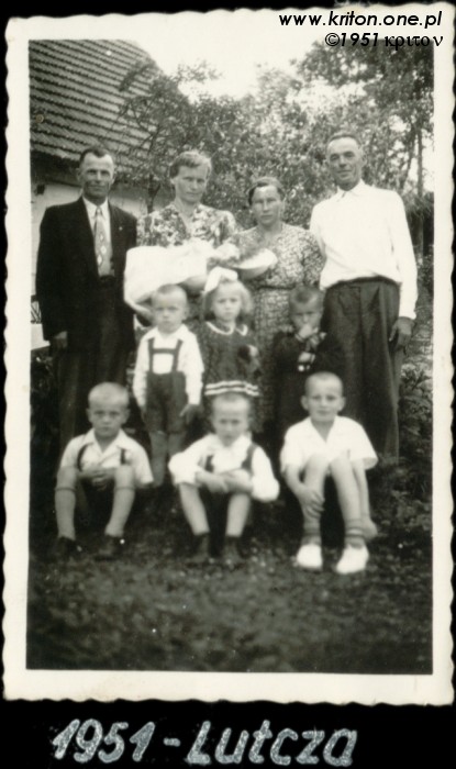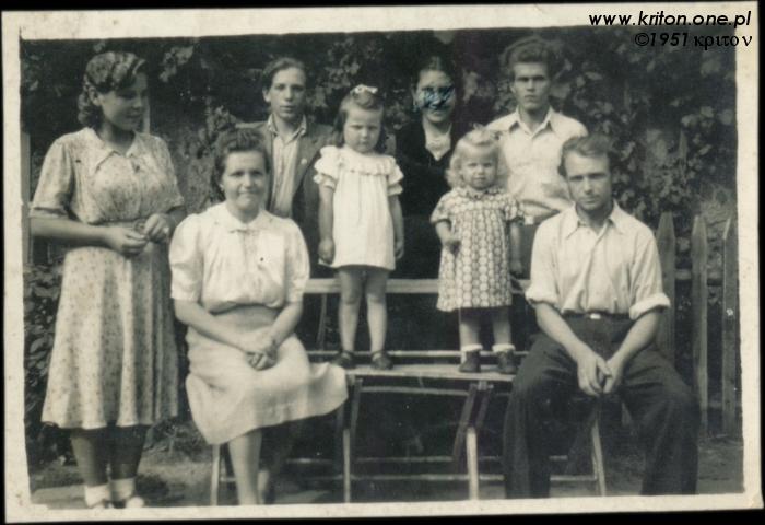 Rok 1951. Oba zdjęcia zrobione mniej więcej w tym samym czasie, chociaż w odległych od siebie o 500 km miejscach. Na pierwszym mój tata z rodziną, a na drugim moja mama stoi na ławce razem z siostrą Danusią, obok siedzą ich rodzice – Filomena i Bolesław. Po prawej stronie babci Filomeny stoi jej siostra – Henryka, a za nią brat dziadka Bolesława – Władysław. Za dziadkiem Bolesławem brat od Filomeny – Józef.