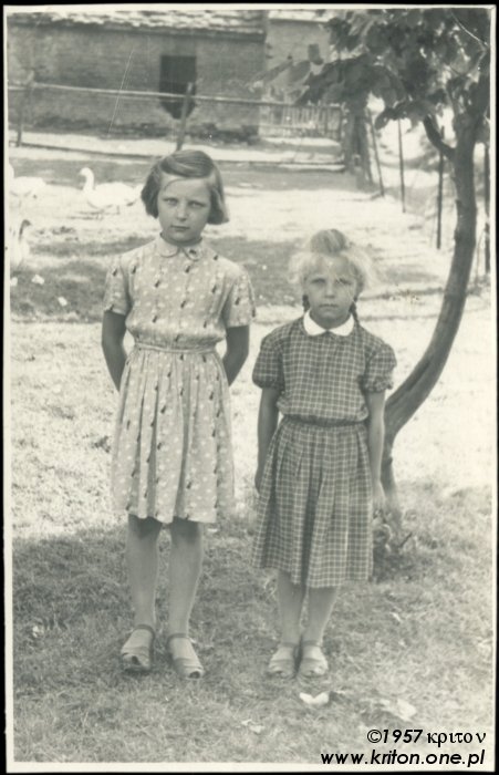 Rok 1950. Najstarsze zdjęcie, na którym jest moja mama – Krystyna Borycka (✴ 15.08.1946). Ma na nim 4 lata. W tym samym czasie, na zdjęciu po prawej, kuzyn mojego taty – Olek, a może Mietek (zdania są podzielone).