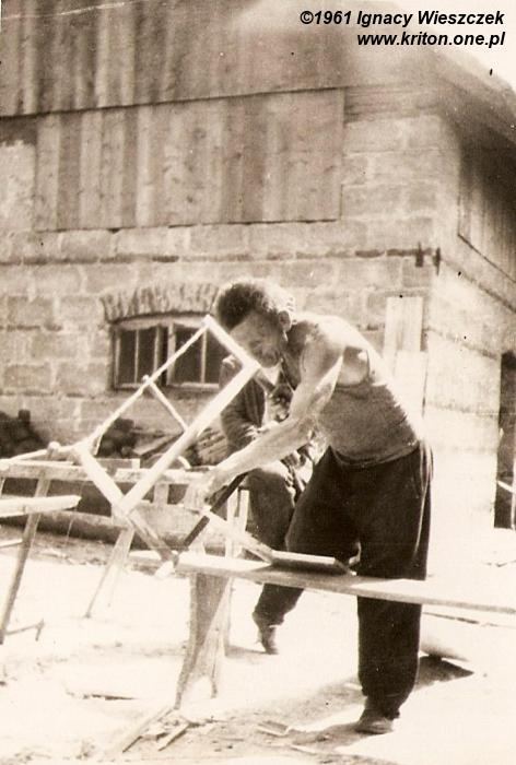 W 1961 roku do Lutczy dociera cywilizacja – budowana jest asfaltowa droga! W domu pojawia się radio lampowe, a nawet pralka! W tym samym roku powstaje stodoła (na poniższym zdjęciu widać prawdopodobnie jak dziadek robi do niej drzwi), a ciocia Teresa idzie do pierwszej komunii.