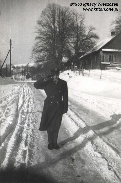 Po lewej mój tata w jednostce w Lublinie. Na pierwszym zdjęciu poniżej moja babcia przed domem, a z nią prawdopodobnie najmłodszy brat taty – Czesław (✴ 30.07.1959) i siostra mojego taty – Teresa. Na drugim już prawie ukończona budowa nowego kościoła. Na ostatnim zdjęciu moja dorastająca mama.