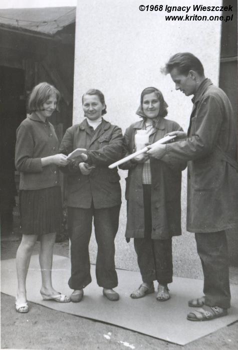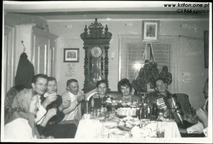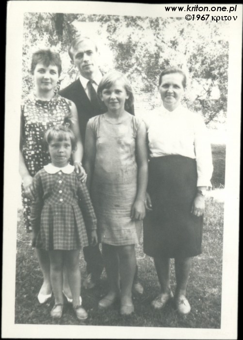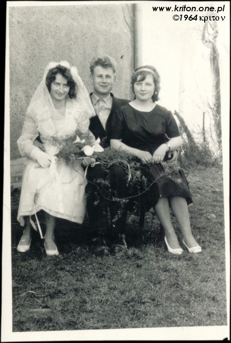 Rok 1965. Śliwice. Między innymi dziadek Bolesław z harmoszką i moja mama, jeszcze jako panienka. W tym samym roku Krystyna (mama) pojechała do Świętej Katarzyny aby być świadkiem bierzmowania Danusi Pióro (córki siostry prababci Anieli – mamy dziadka Bolesława... ufff). W tym samym czasie mój tata odbywał służbę wojskową w jednostce w Lublinie. W Świętej Katarzynie kręcono właśnie film "Barwy walki", więc tata wykorzystał przepustkę, by się tam wybrać i zrobić przy okazji kilka zdjęć. Spotkali się przypadkiem na ulicy, a że Krysia wpadła mu w oko, to i jej poświęcił kilka klatek, co było pretekstem do zdobycia adresu...