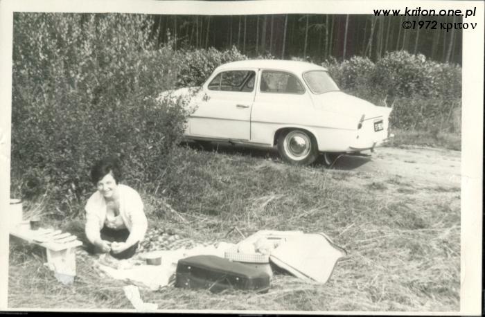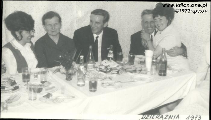 W roku 1972 rodzice kupili Škodę Octavię i przeprowadzili się z kawalerki do 2-pokojowego mieszkania w wieżowcu na osiedlu G. Na drugim zdjęciu widać jakąś zakrapianą imprezę w Dzierążni, być może jest to wesele stryjka Władka, który 15 kwietnia 1972 roku wziął ślub z Zofią. W albumie mojego taty zdjęcie to jednak widnieje pod datą 1973 roku. Może tata się pomylił, a może świętowanie się przeciągnęło.