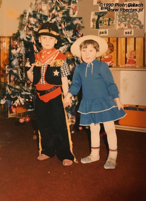 Życie transwestyty nie jest łatwe. Wiem, co mówię, sam mam z dzieciństwa całą masę zdjęć w damskich fatałaszkach. Tym razem to jednak nie ja, tylko para zaprzyjaźnionych zboczeńców z Katowic. Janek lubi się przebierać za szeryfa. Podnieca go poczucie władzy, kapelusz na głowie i giwera w dłoni. Samiec alfa. Ta nieśmiała dziewczynka w niebieskiej sukieneczce obok niego, to oczywiście Piotrek, w kręgach przedszkolnych znany również jako Piotrusia. Nie dajcie się jednak zwieść jej niewinnym oczętom i drobnym usteczkom. Już niejednemu maczo Piotrusia złamała serce!
