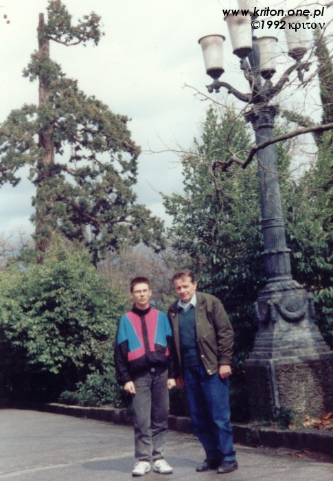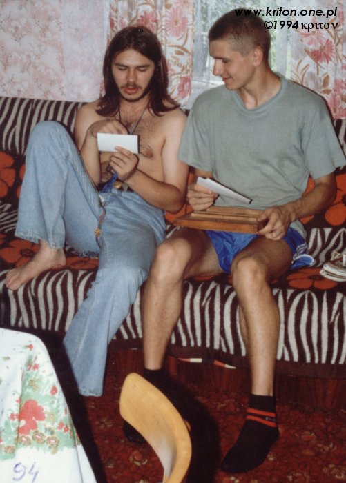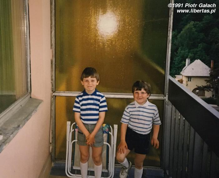 Tych dwóch dżentelmenów w 1991 roku jeszcze nie znałem. Niby takie gówniarze, a od razu widać, że szelmy, alkoholiki i zboczeńce. Oj, będzie się działo, jak już się nasze drogi zejdą, ale póki co chłopcy grzecznie spędzają wakacje w Krynicy Górskiej i piją wyłącznie czystą wodę.