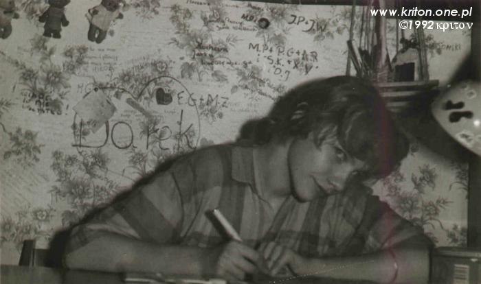 Obok zdjęcia z moich imienin. Jakże miło przypomnieć sobie tamte twarze! Olę czasem widuję, nadal jest śliczna i uśmiechnięta jak wtedy. Pozostałych nie widziałem od lat. Gdy patrzę na Pawła, przypomina mi się, jak mniej więcej w tym czasie biegaliśmy po szkole i skandowaliśmy LECH WAŁĘSA. Nie mieliśmy jeszcze prawa głosować, więc to był jedyny sposób, w jaki mogliśmy zademonstrować swoje poparcie dla przemian. Trochę naiwne i nieświadome wielu rzeczy, ale młodość ma tendencje do powierzchownych i czarno-białych ocen. Co prawda moja świadomość polityczna skokowo wtedy wzrosła, również dzięki coraz odważniejszym lekcjom historii u pana Maciejewskiego, ale oględnie mówiąc, byłem głupi i naiwny jak tapeta w motylki.
