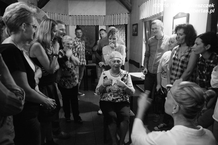 Później przyszedł czas na zabawy, tym ciekawsze, że odważyły się wziąć w nich udział również nasze nauczycielki. Zasady były proste, należało odgadnąć, czyje nazwisko nosi się na czole, zadając swojemu rywalowi proste pytania typu tak/nie. Oczywiście kto wygrywał, było sprawą drugo- a nawet trzeciorzędną, ale zabawa była przednia i często przerywana wybuchami śmiechu...