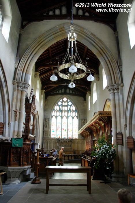 We wsi znajduje się niewielki stary kościółek św. Andrzeja. Obecny budynek wzniesiono w 1536 roku, a około roku 1829 dobudowano wieżę i zainstalowano w niej dzwony. Choćby ze względu na wiek warto było ten kościół odwiedzić. Pierwszy raz jestem w Anglii i kościoły anglikańskie wciąż są dla mnie czymś nowym. W dodatku za wstęp każą sobie często słono płacić, co trochę mnie od nich odstrasza. Rozumiem dobrowolne datki i np. w Kolonii w kilku pięknych romańskich świątyniach jakieś drobne zostawiałem, ale obligatoryjne bilety na zwiedzanie kościoła w cenie kilku – kilkunastu funtów, to jest coś, czego zrozumieć nie potrafię, zwłaszcza gdy muzea są tu często darmowe. Dziwni ci Anglicy.