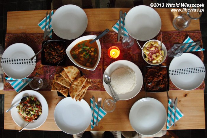 Tymczasem Karolina przygotowywała już potrawy na wieczór indyjski. Uwielbiam indyjską kuchnię i wiedząc, że Karolina taką właśnie ucztę na wieczór przygotowuje, głodziłem się przez cały dzień, a potem wytarłem talerz tak, jak tylko się dało, nie używając do tego języka, co mogłoby być jednak uznane za zbyt barbarzyńskie. Pohamowałem się, ale z trudem. Po prostu niebo w gębie!