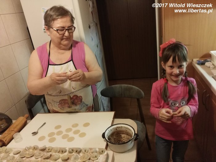 W kolejny łikend spotykamy się przy lepieniu pierogów. Ja pozostaję oczywiście wierny tradycji i lepię pierogi własnymi rękami, za to Maja, wydaje się być już dzieckiem XXI wieku, bo do klejenia zaprzęga swoją przenośną i sprytną technologię smart.