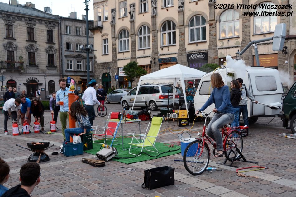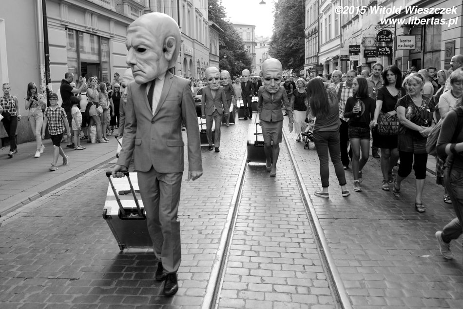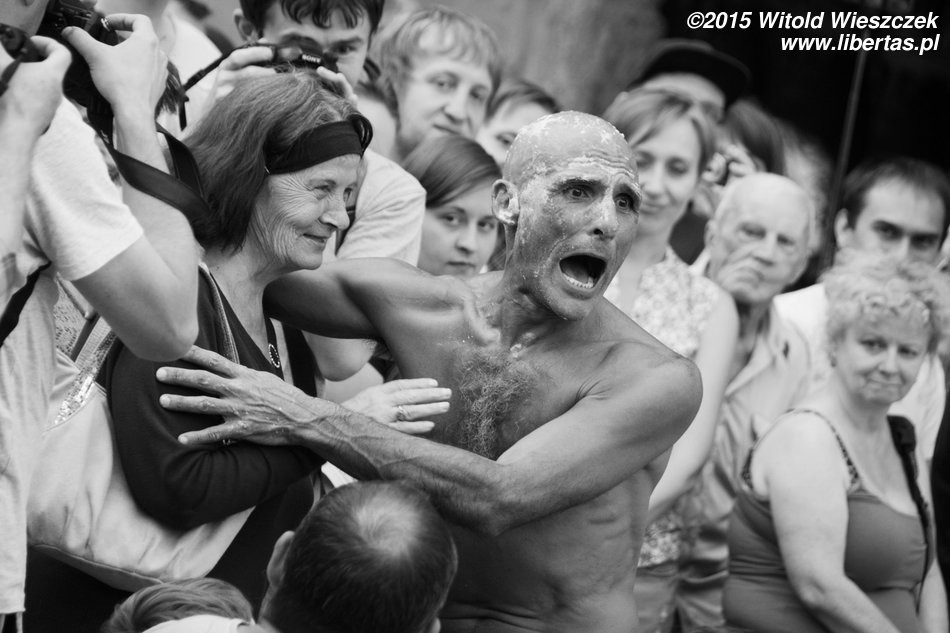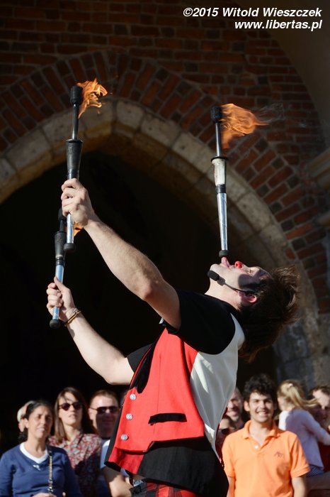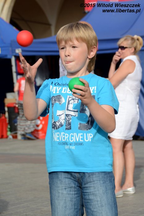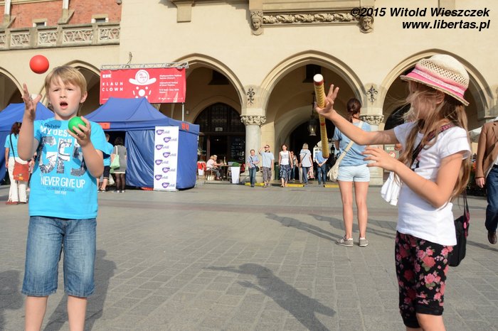 No i znowu jesteśmy na Festiwalu Teatrów Ulicznych w Krakowie. Już ósmy raz! Aż się wierzyć nie chce. W dodatku nie zadowalamy się już samym tylko oglądaniem spektakli, bo coraz częściej też występujemy. Sam nie wiem skąd w nas takie parcie na szkło! Skąd ta potrzeba bycia sławnym i oklaskiwanym?! Jeśli się nie mylę, to Jeremi pojawił się w tym roku na scenie aż trzy razy! Ja poprzestałem na jednym spektaklu, w którym grałem słynnego waltornistę!