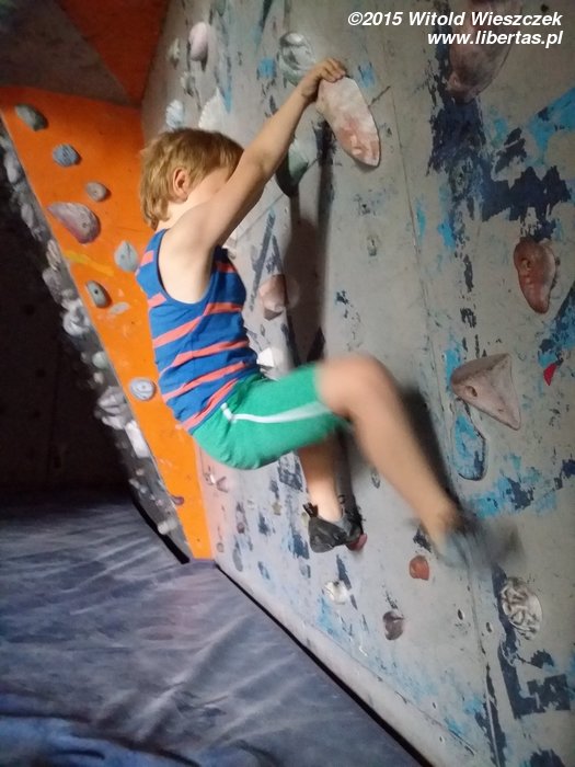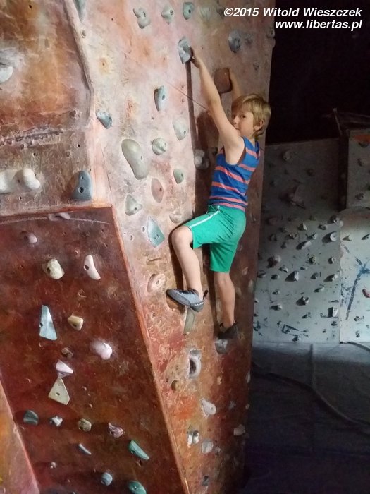 W piątek rozpoczęliśmy dzień od wizyty na ściance, bo Jeremi z niezrozumiałych dla mnie powodów woli jednak sztuczne ściany niż skały, a Forteca w Krakowie jest naprawdę bardzo przyjaznym wspinaczom miejsce. Zawsze lubiłem tu przyjeżdżać, a tym razem spotkała mnie dodatkowa miła niespodzianka. Pani sprzedająca mi bilet powiedziała, że mam zapłacić tylko za Jeremiego. Mówiłem, że co prawda będę głównie asekurował, ale jakieś kółeczko po bulderach też pewnie sobie zrobię, a ona uparcie, że płacić nie muszę. Dziękuję! I wszystkim gorąco polecam krakowską Fortecę.
