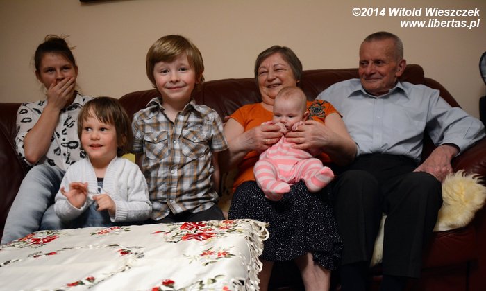 A to już imieniny babci Krysi. Przy okazji tej uroczystości udaje mi się zebrać na jednej fotografii babcię Krysię, dziadka Inka oraz wszystkie wnuki: Maję, Jeremiego, Nataszę i najmłodszą Dobrawę.