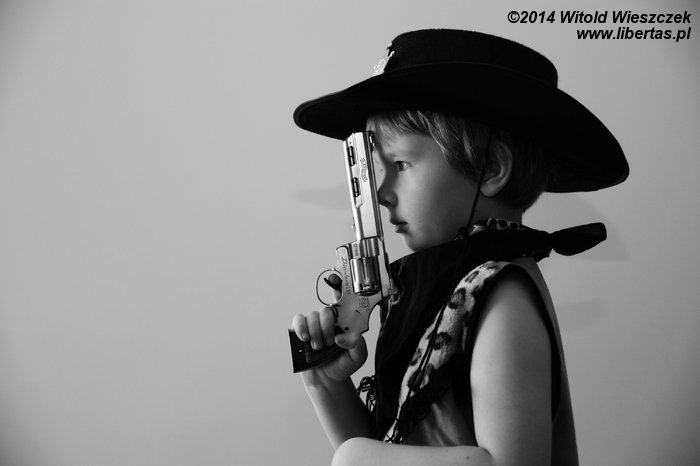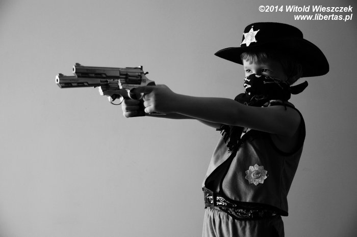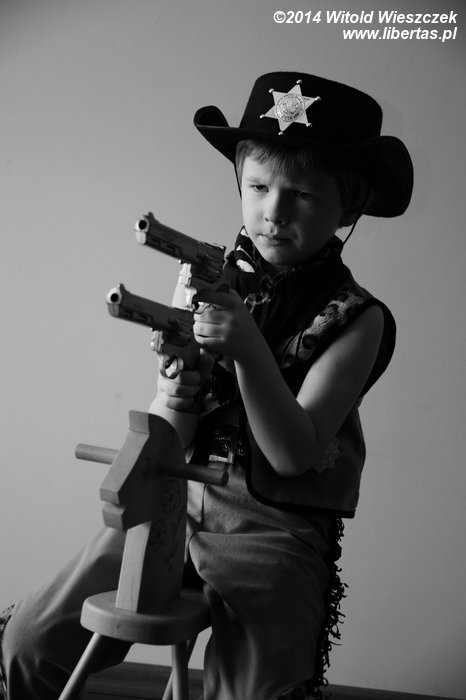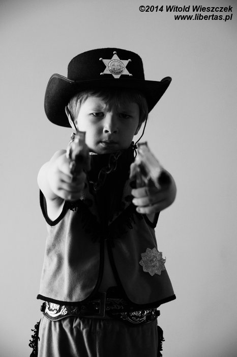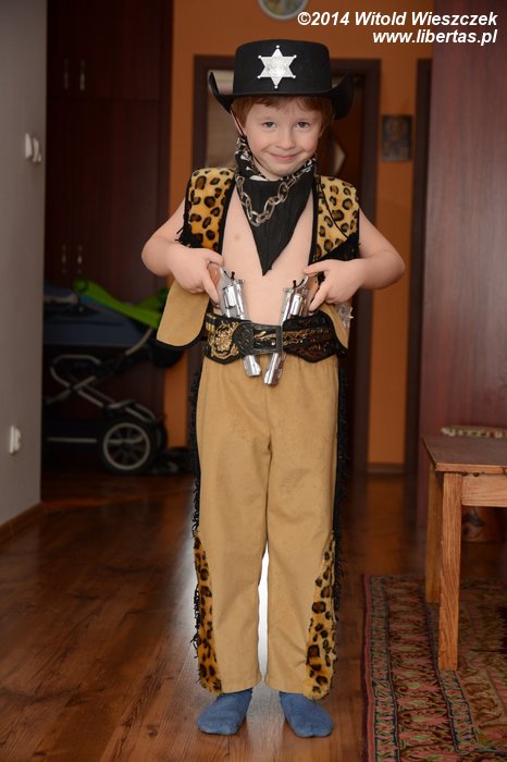 Jeremi został ostatnio fanem spaghetti westernów. Oglądamy razem namiętnie filmy Sergio Leone, a Maja wyjątkowo zasypia przed bratem. Dziki Zachód, rewolwerowcy, dobrzy, źli, a nawet brzydcy i do tego Ennio Morricone. Klasyka. A za kogo można się przebrać po takich filmowych seansach? Za rewolwerowca oczywiście! Ewentualnie za łowcę nagród, bandytę albo szeryfa.