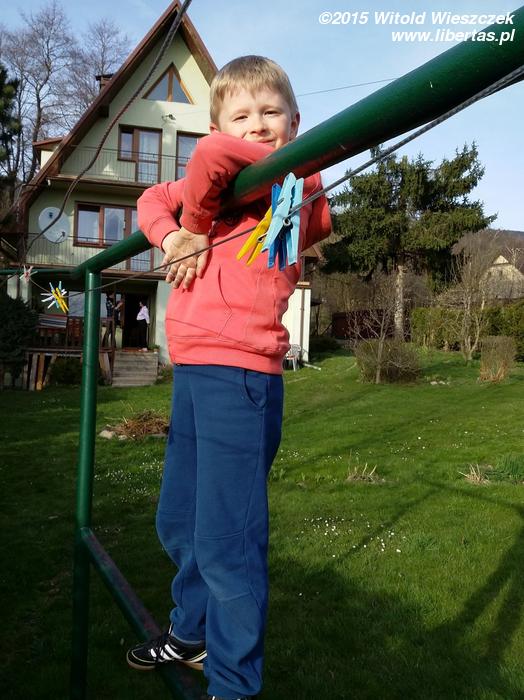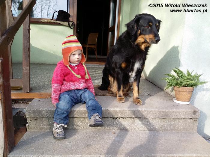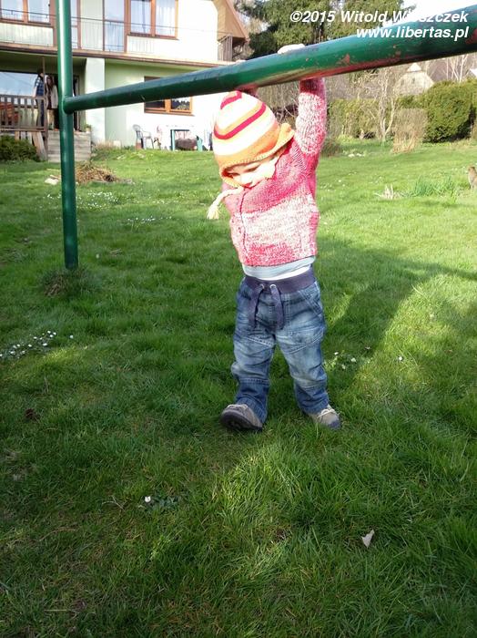 Po dość długiej przerwie wybraliśmy się do Wilkowic. Wiosna ledwie się zaczęła, a ogród nie zdążył się jeszcze porządnie zazielenić i rozkwiecić wszystkimi kolorami, ale w ciepłych promieniach słońca i tak było bardzo przyjemnie. Dobrawa wystawiała na próbę cierpliwość Miśka i Myszki, Maja mi pozowała, a Jeremi kopał piłkę. W prezencie od Ady dostałem oryginalną szkocką spódniczkę po Franku. Dziękuję. Nieskromnie powiem, że leży na mnie świetnie!