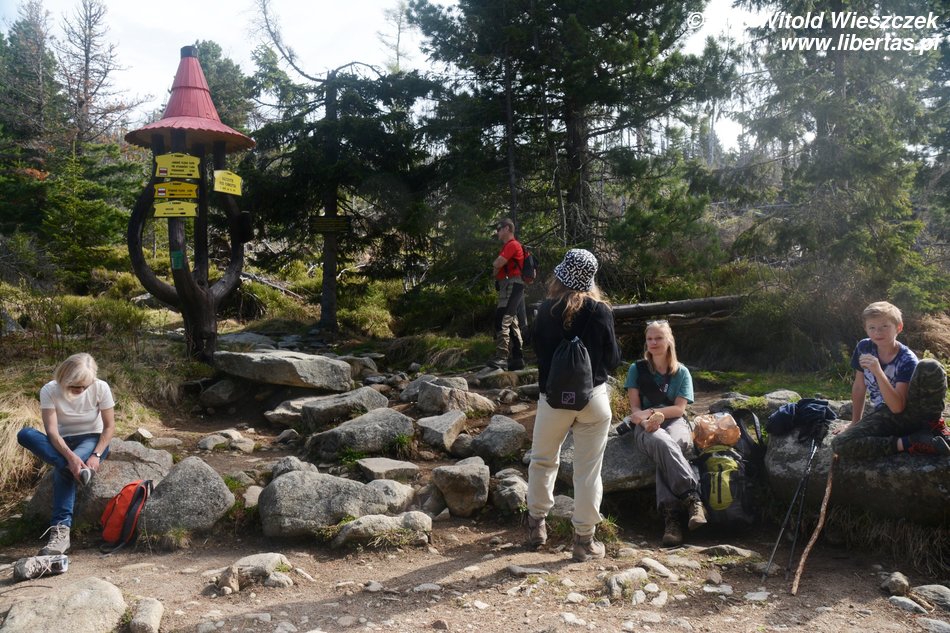 Podczas wycieczki towarzyszą nam Lidzia i Michał, którzy postanowili na dwie noce do nas dołączyć. Rano trochę kropi i na początku wydaje się, że błoto może nam skutecznie dzień zepsuć, ale po kilkunastu minutach marszu stan nieba i ziemi wyraźnie się poprawia, deszcz zanika, a słoneczko coraz śmielej do nas mruga i po twarzach głaszcze.