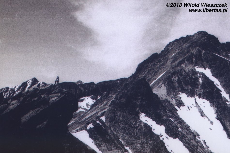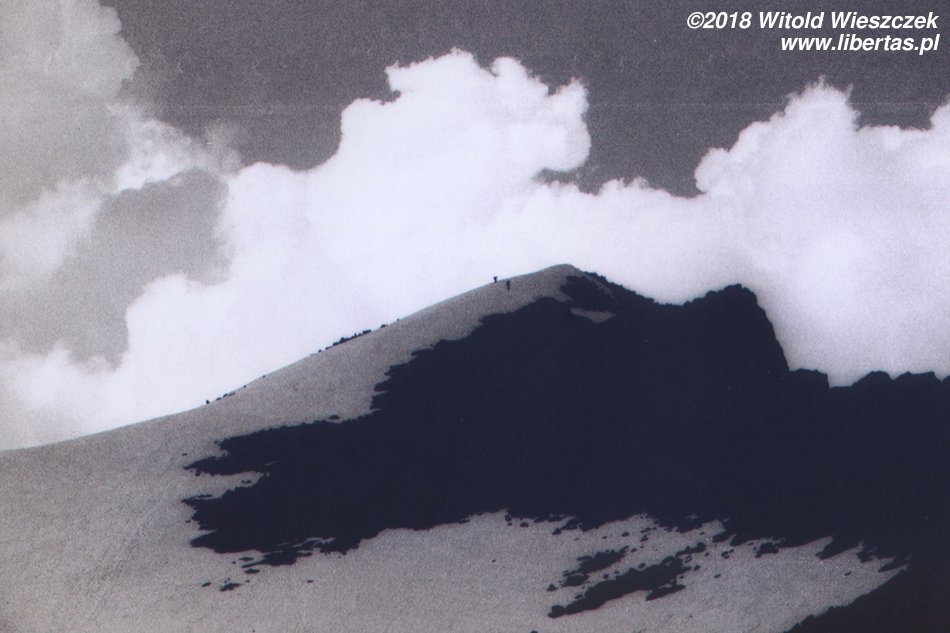 Zawaliliśmy. Nasze anielice zostały trochę w tyle, a my nie umówiliśmy się co dalej. Jerem wyraża chęć, żeby zaatakować szczyt, ale czas nagli, a my nie wiemy, czy dziewczęta będą chciały iść wyżej. Postanawiamy nie czekać, jeśli Kasia z Patrycją się zdecydują, to poczekamy na nie na szczycie, a jeśli nie, to im szybciej ruszymy, tym krócej będą na nas czekały. Podkręcamy tempo jeszcze bardziej i choć dość głęboki śnieg momentami nas spowalnia, to tempo mamy więcej niż zadowalające. Na przedwierzchołku spotykamy jakichś marudzących mężczyzn w sile wieku, że niby stromo i w ogóle śnieg jest zbyt biały. Ciekawe co sobie myślą na widok Jerema skaczącego po kamieniach jak kozica.