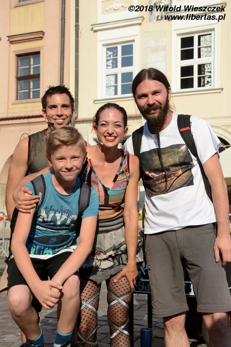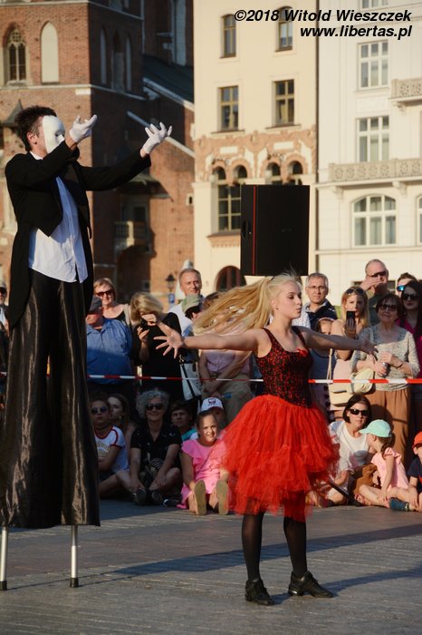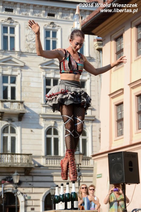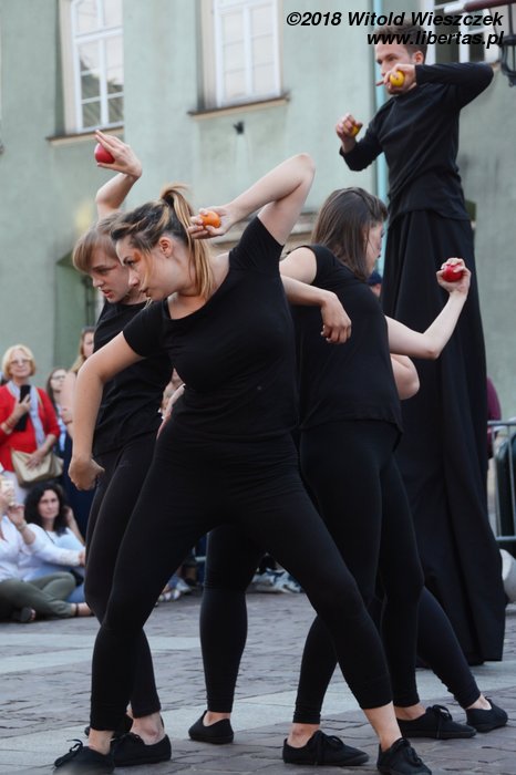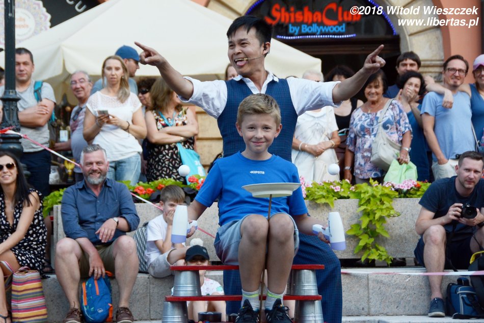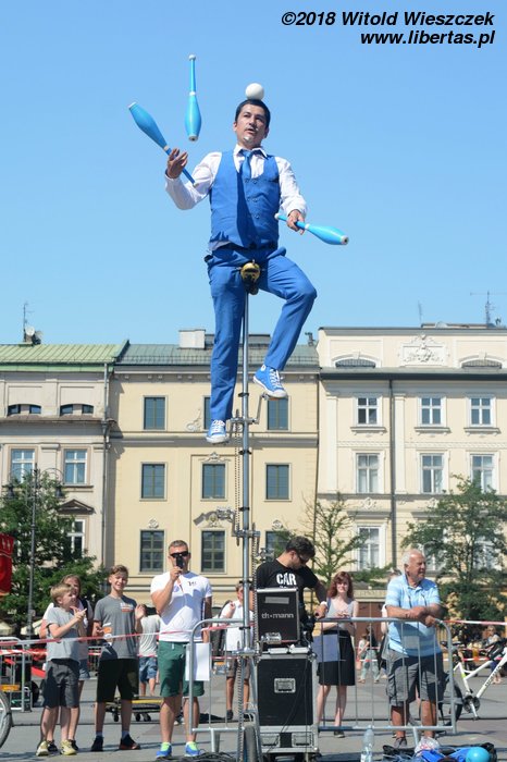 Kontakt z festiwalem rozpoczynamy od przedstawienia „Przeciąganie liny”, w którym bohater jeździ na 3-metrowym monocyklu. Nie bardzo wiem po co, ale trzeba przyznać, że facet musi mieć niezłe poczucie równowagi, żeby z tego ustrojstwa nie zlecieć. Zachwyca nas natomiast para akrobatów występujących pod nazwą Duo Looky. Bijemy im brawa na stojąco, a nawet zgłaszamy się po autografy.