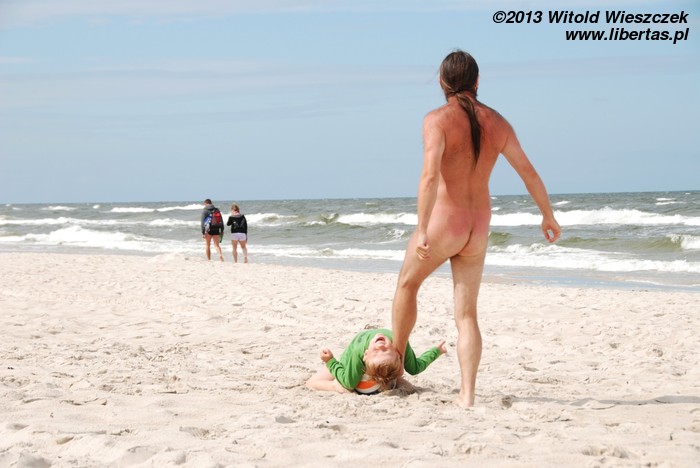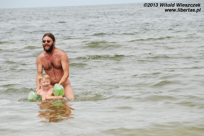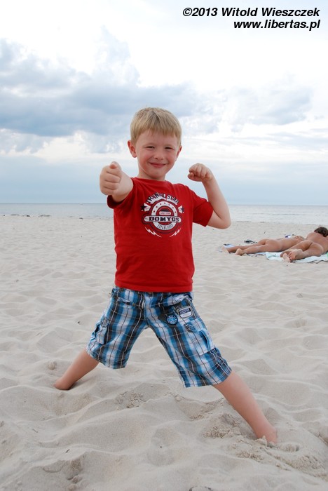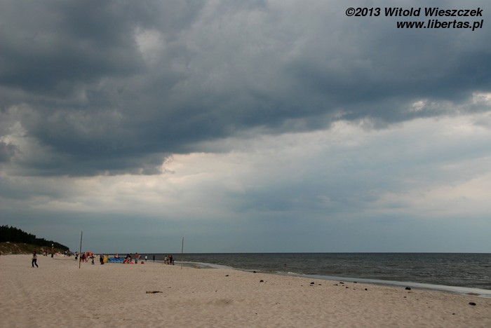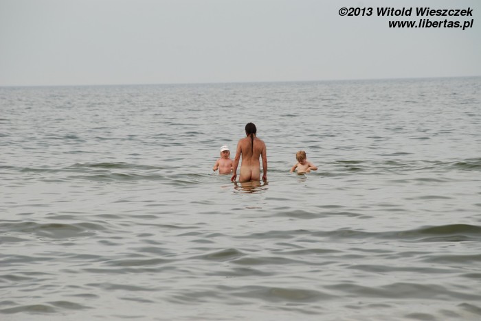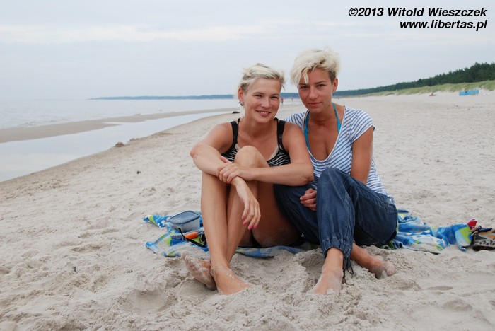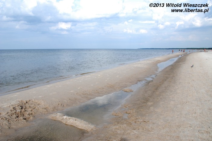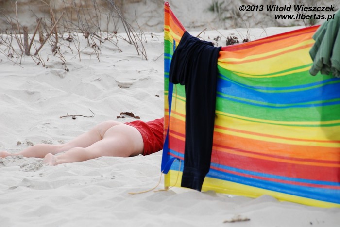 No i rzeczywiście, chyba kilometr, może dwa kilometry za Grzybowem, znaleźliśmy plażę bardzo ładną i znacznie rzadziej zaludnioną. Być może dlatego, że położoną dalej od miasteczka, a może dlatego, że obowiązują na niej stroje... wieczorowe.