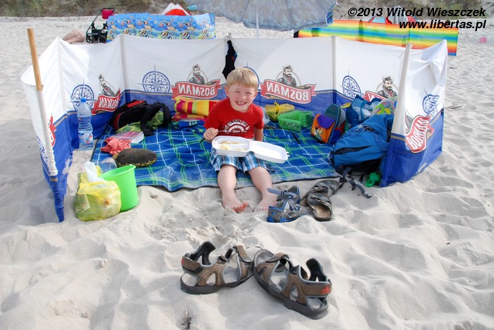 Na plaży poznaliśmy Anię i Olę, bardzo sympatyczne dziewczyny, które akurat odpoczywały tu wraz z gromadką dzieci, dzięki czemu zajęty zabawami Jeremi zupełnie się nie nudził, a ja mogłem nawet trochę pospać i poczytać.
