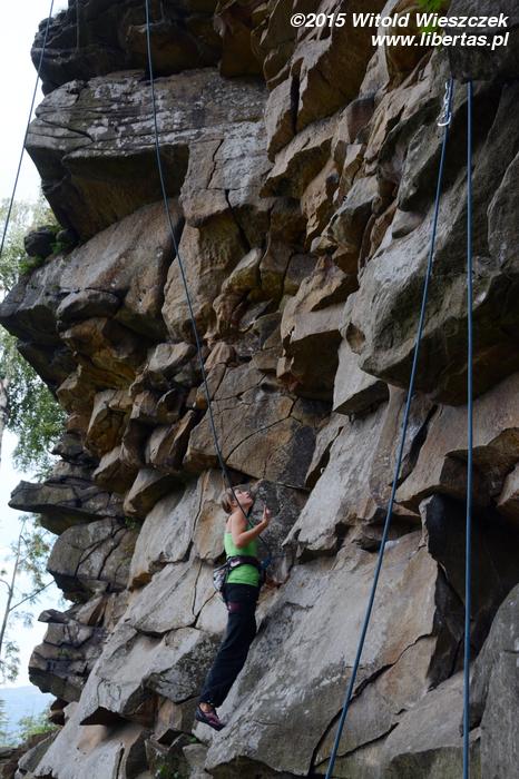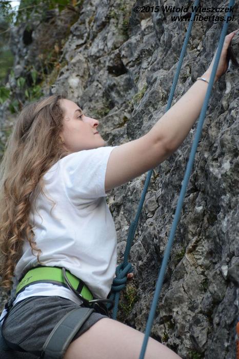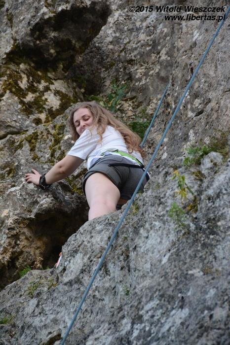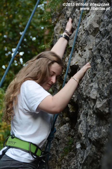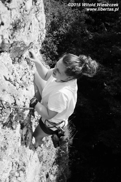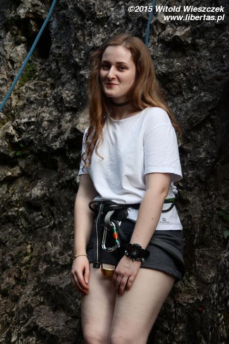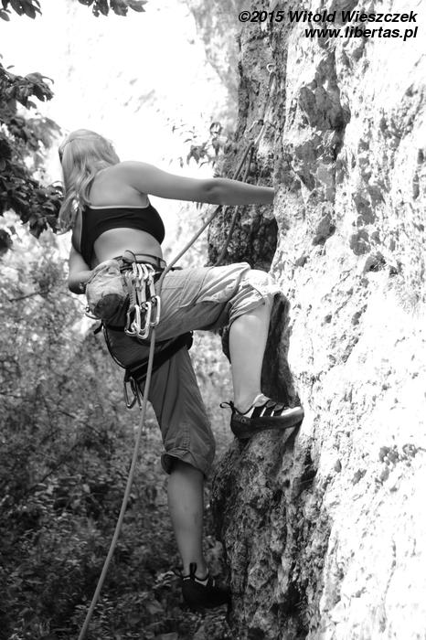 Jeździmy na skały już od jakiegoś czasu, a najlepsza przyjaciółka Kasi nie potrafi pojąć, po co w ogóle tam się jeździ. No ale tego się nie da opowiedzieć. To trzeba poczuć na własnej skórze! Chcesz się dowiedzieć? Jedź z nami! Patrycja pojechała i nawet dała się związać. Nie wiem tylko, jak można się wspinać, mając tak długie paznokcie (pierwszy raz coś takiego widziałem), ale dała radę! Niestety zapomniała pomalować ich na jakiś jaskrawy kolor, więc na zdjęciach nie jest to zbyt widoczne. Może uwierzycie mi na słowo.