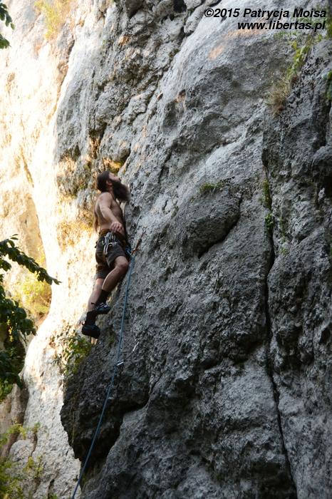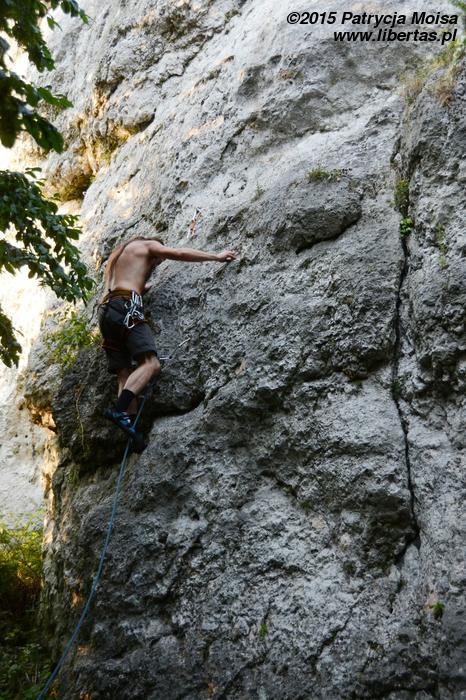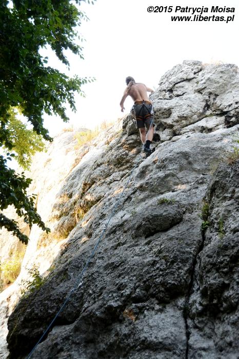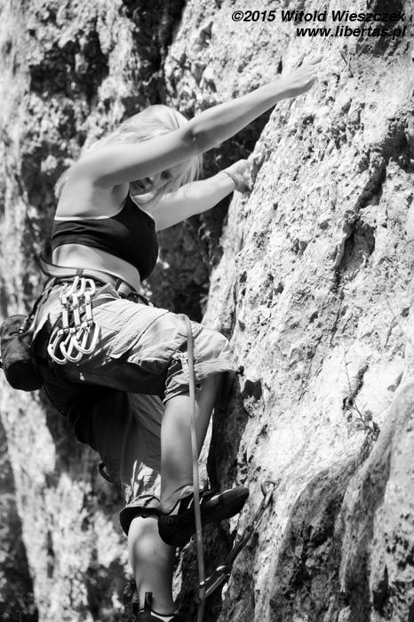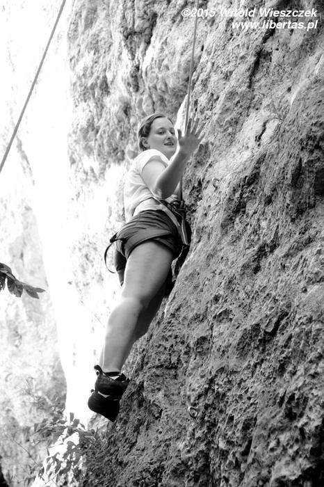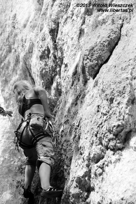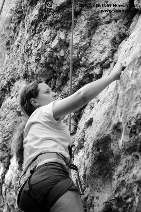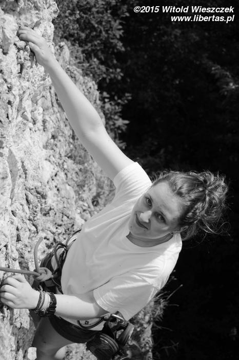 Skoro mamy towarzystwo w postaci Patrycji, to szkoda by było jej nie wykorzystać! Znudziły mi się już ustawki pod skałą, po zrobionej drodze! W końcu jest szansa, żeby ktoś zrobił nam jakieś zdjęcia w akcji! Uczymy Patrycję asekurować, dzięki czemu mogę zrobić parę zdjęć Kasi, a mi kilka ujęć strzela Patrycja.