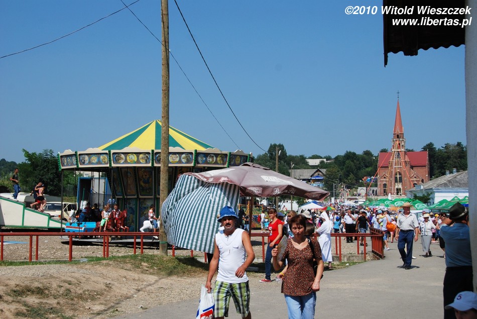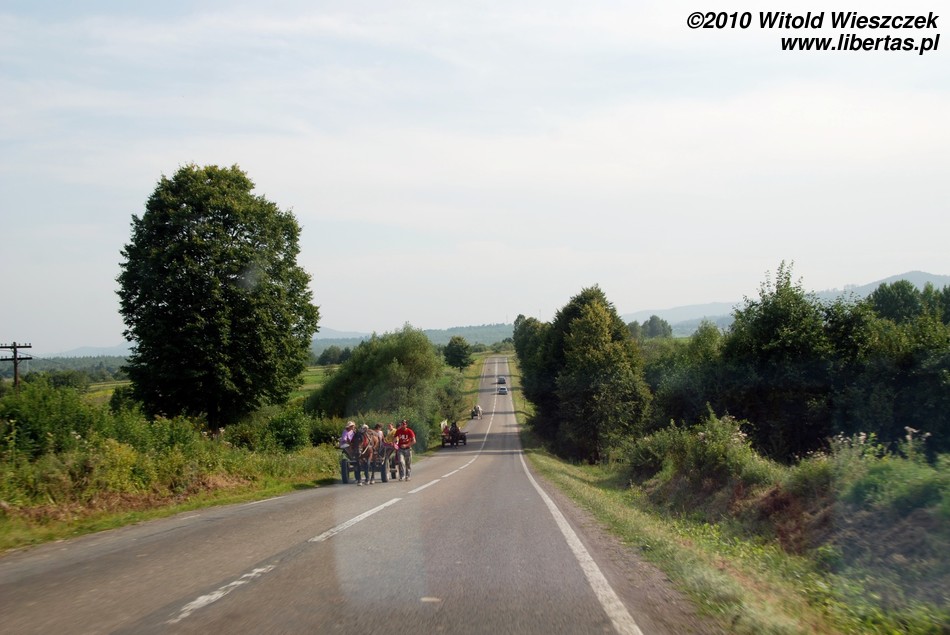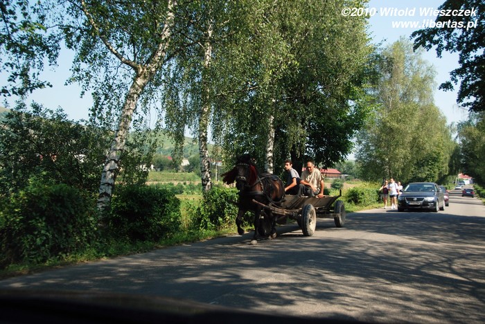 Następny punkt programu to najstarsza z polskich wsi na Bukowinie – Kaczyka (rum. Cacica). Wieś powstała pod koniec XVIII wieku po tym, jak odkryto w okolicy pokłady soli. To na jej potrzeby sprowadzono tutaj polskich górników wraz z rodzinami. Tak się składa, że akurat dzisiaj jest odpust, pewnie z okazji jutrzejszego święta, czyli Wniebowzięcia Najświętszej Maryi Panny (15 sierpnia). Prawdopodobnie w związku z tym, że na to wydarzenie przybywa do Kaczyki wiele osób i to nie tylko katolików, policja zamknęła dojazd do wsi! Musimy zostawić samochód na drodze i przejść jakieś 2 kilometry na piechotę. Niby niedaleko, ale jest upał, a Jeremi nie bardzo chce całą tę odległość pokonać o własnych siłach.