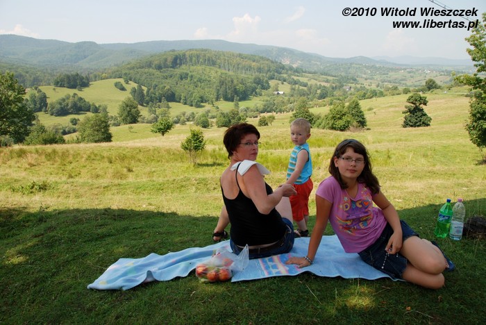 Po drodze, w Gura Humora (rum. Gura Humorului), kupujemy owoce, pieczywo i jogurty na śniadanie. Nalegam jednak, by zaczekać z konsumpcją. Po drodze znajduję pagórek z ładnym widokiem na okolicę. Niestety jest trochę zaśmiecony, więc w czynie społecznym zbieramy szybko śmieci w promieniu kilku metrów, aby nie psuły nam widoku. Rozkładamy kocyk, posilamy się... Mała rzecz, a cieszy! Tak właśnie powinno wyglądać każde wakacyjne śniadanie!