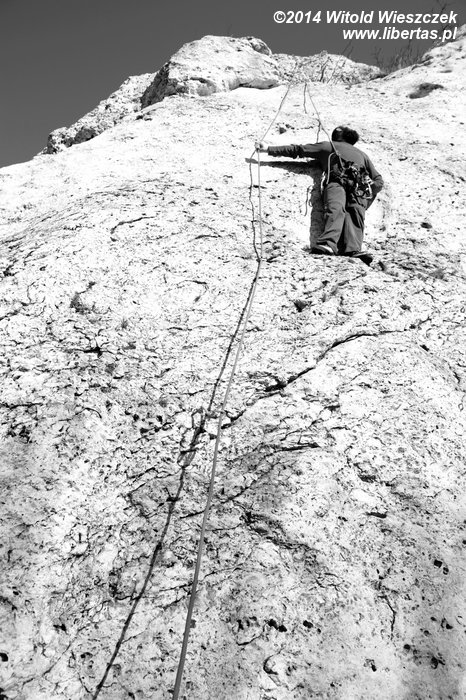 Poprzedni sezon nie był dla mnie zbyt szczęśliwy i pozostawił ogromny niedosyt. W tym roku jednak los się do mnie uśmiechnął, zsyłając mi Kasię. Jest dopiero koniec marca, a my jesteśmy na skałach już po raz piąty! Ponieważ wszystko wskazuje na to, że w najbliższym czasie będziemy się wspinać razem, to najwyższy czas zacząć spisywać historię wiekopomnych dokonań naszego nieformalnego dwuosobowego Klubu Wysokogórskiego, hej! Oczywiście moglibyśmy zrobić od razu jakieś tam VI.4, ale ponieważ nie mamy drabiny, to zaczynamy od niższego pułapu. Jakieś cele trzeba sobie w końcu na później zostawić!