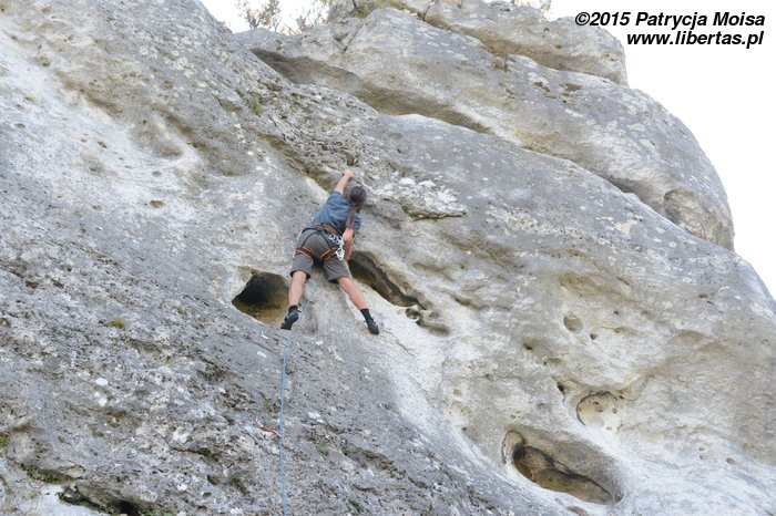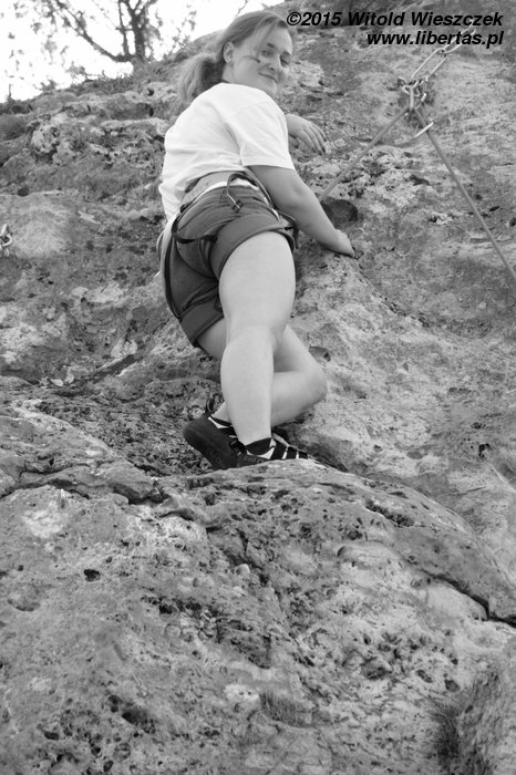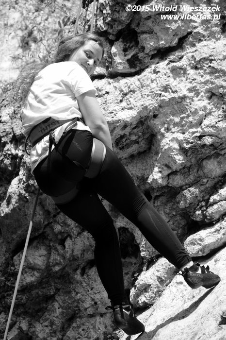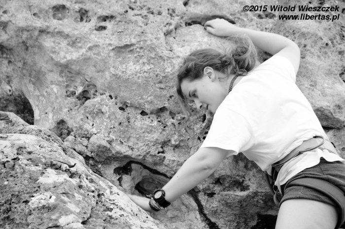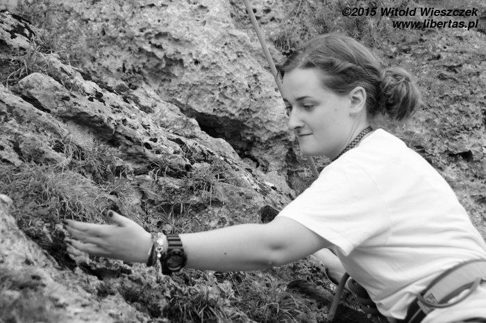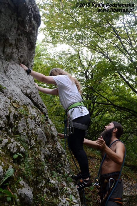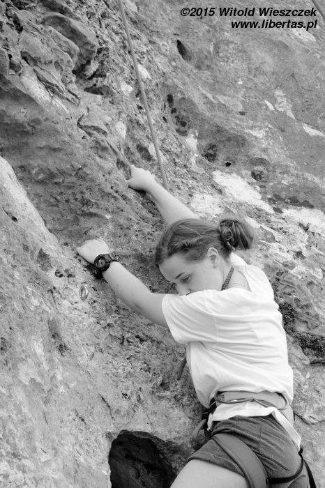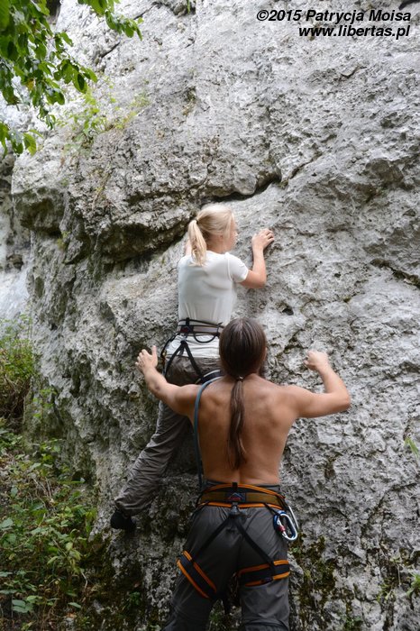 Patrycja robi na wędkę łatwiejszy wariant z obejściem z lewej (Śledzik w życie) za V-, a na koniec dla przypomnienia zagryza śledzikiem Tequilę jeszcze Kasia.