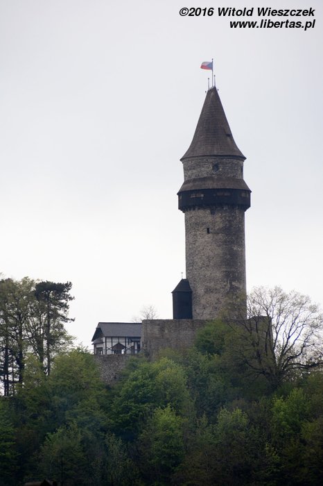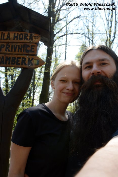 Wcześnie rano opuściliśmy niezbyt przyjemny pokój i ruszyliśmy w dalszą drogę. Kolejny przystanek: Helfštyn! Dość łatwo odnajdujemy parking niedaleko skał. Jakaś pani wytykając nas palcem, rozmawia z sąsiadem. Chyba się jej nie podoba, że tu parkujemy. Oooo, idzie nas opieprzyć! Dobrý den! Szukamy skał? Ano, szukamy. Pani syn się wspina? Tak, też jesteśmy horolezki (uczymy się nowego słówka!) Czeszka uśmiecha się szeroko i mówi, gdzie mamy iść, choć tutaj nawet my byśmy się chyba nie zgubili. Ależ to było miłe z jej strony! Fajni ci Czesi!
