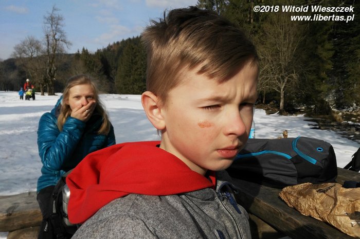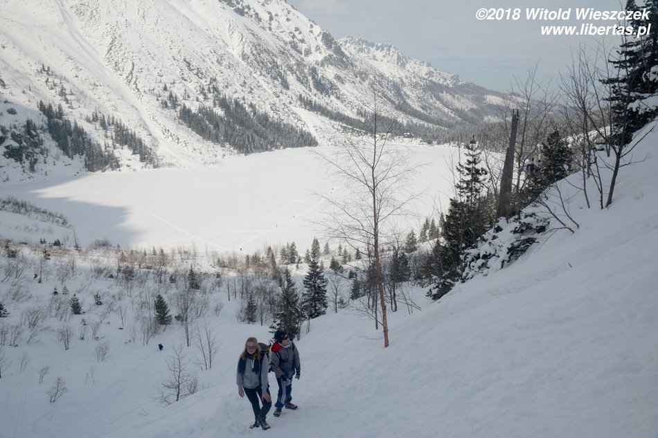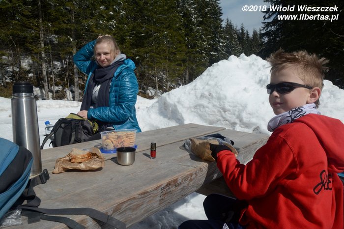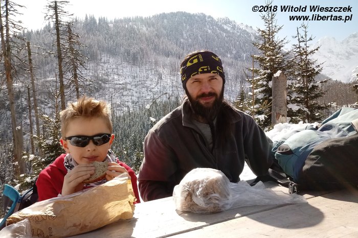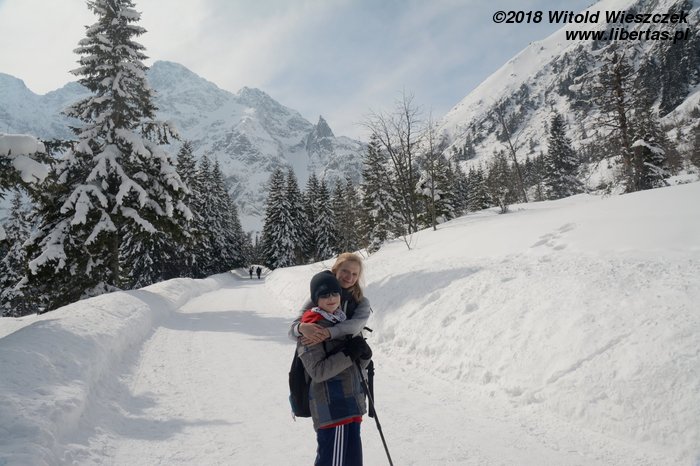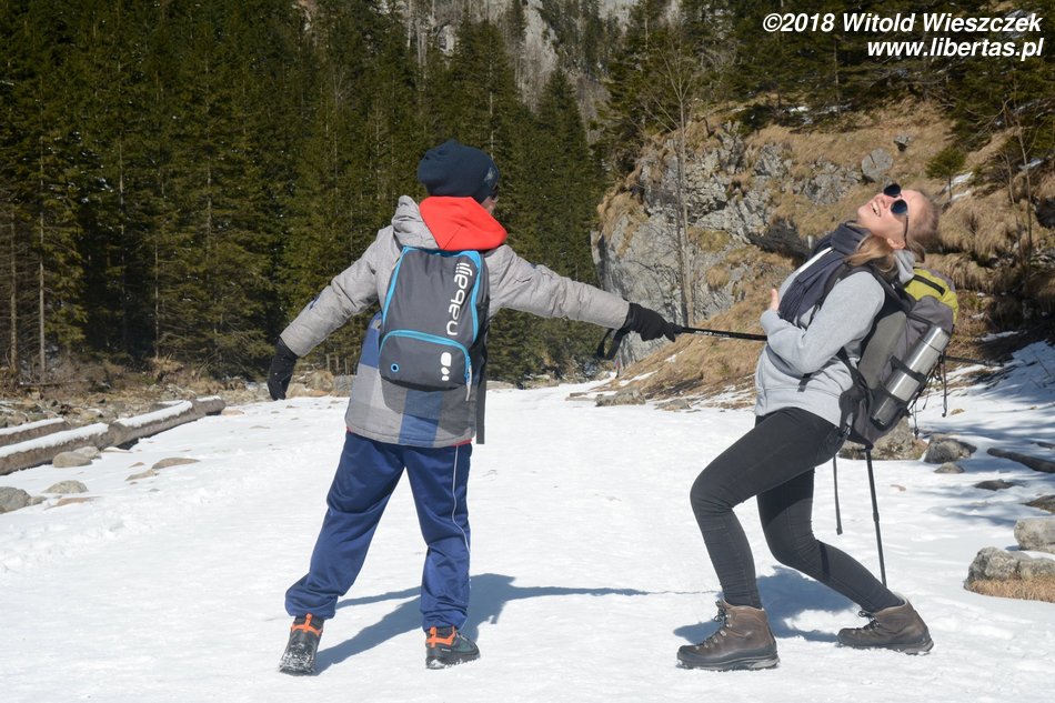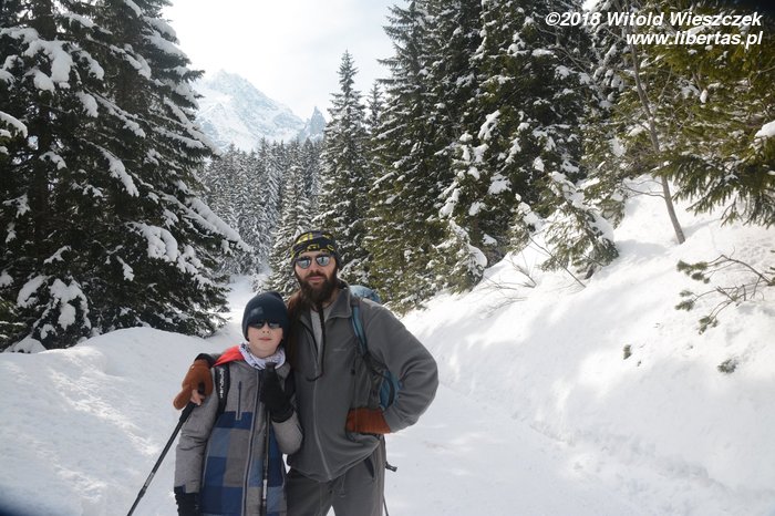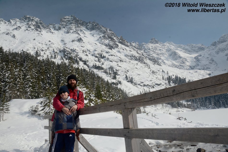 Jechaliśmy przez noc, tak by z samego rana ruszyć na szlak. Dzień wcześniej ustaliliśmy z Kasią, że z uwagi na Jerema, pójdziemy nad Morskie Oko. Tak, żeby zachęcić, a nie zrazić. Wydało nam się to bezpieczną opcją, bo szlak łatwy, niemal płaski, a na końcu przecież jedno z najpiękniejszych miejsc w naszych Tatrach. Co prawda dwa dni temu zaczęła się wiosna, ale nad Morskie Oko jeszcze nie dotarła. Jakby nie było, przyjeżdżamy przed sezonem, więc nie spodziewamy się tłumów.