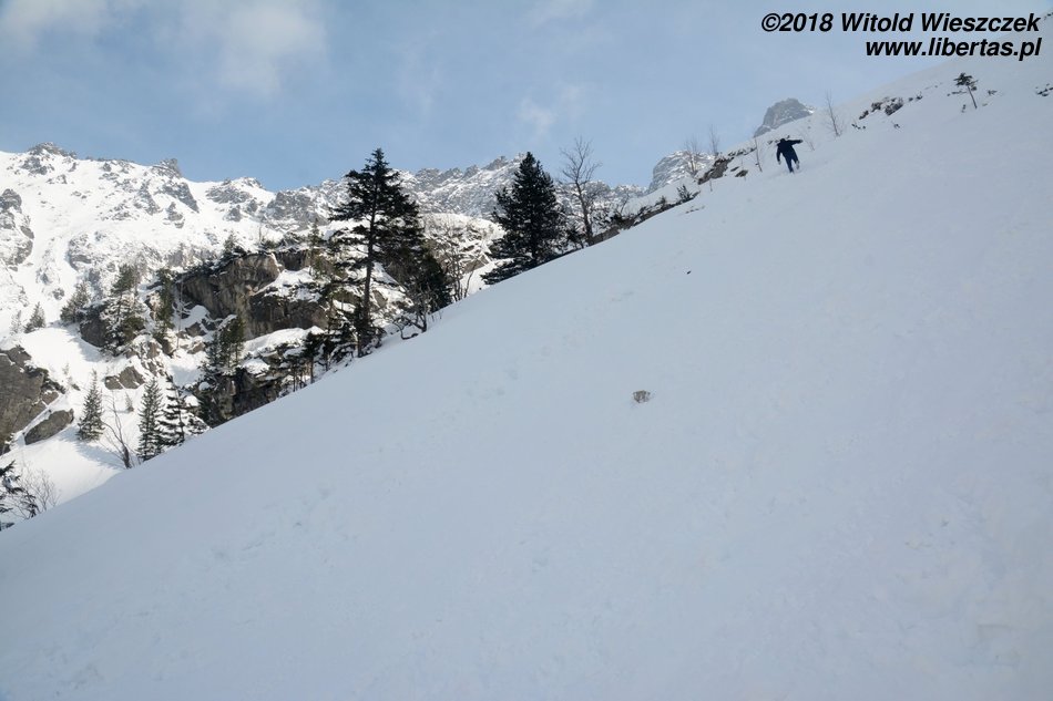 Na szczęście po kilku krokach straciłem równowagę i wylądowałem na czterech literach. Po co wstawać i ryzykować kolejny wypadek. Doświadczenie uczy, że gdy już człowiek siedzi na dupie, to trudno się bardziej przewrócić. Zamiast schodzić, zaczynamy więc zjeżdżać i tylko staramy się nie nabrać zbyt dużej prędkości, powyżej której byśmy już nie wyhamowali bez czekanów. Co prawda po chwili zabiera nas poteżna lawina, którą cudem przeżyliśmy, łapiąc się tak zwanej kosodrzewiny, ale ogólnie decyzja okazuje się słuszna i na dole jesteśmy błyskawicznie. Co więcej, teraz już wszyscy mają na twarzy uśmiech od ucha do ucha. W końcu jak człowiek przeżyje lawinę, to od razu mu się humor na cały dzień poprawia!