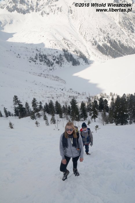 Nie było łatwo. Szedłem pierwszy i butami wydeptywałem stopnie, ale nieraz nogi obsuwały nam się w głębokim śniegu i momentalnie lądowaliśmy dwa metry niżej. Co gorsza, w połowie drogi obróciliśmy się, by podziwiać widoki, co uświadomiło nam, że trzeba będzie przecież jeszcze zejść! Nieśmiało zasugerowałem Jeremiemu, że może jednak zawrócimy, ale ten nie chciał o tym słyszeć. Z bananem na ustach odpowiedział, że przecież dopiero teraz jest fajnie! Dla mnie też podejścia do tatrzańskich schronisk (a zwłaszcza zejścia!) to bardziej przykra konieczność niż przyjemność, ale mimo wszystko nie przewidziałem takiego obrotu sprawy.