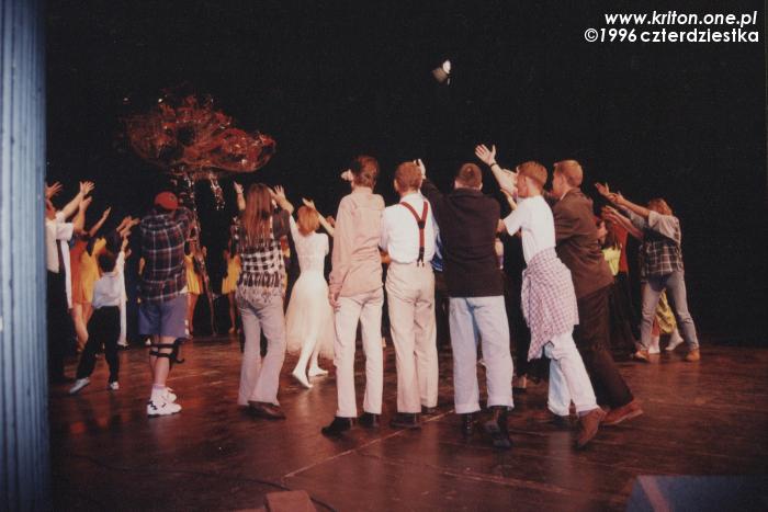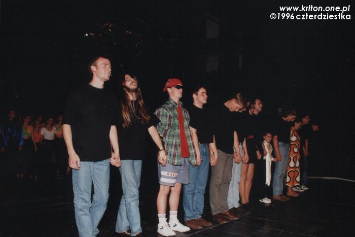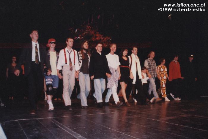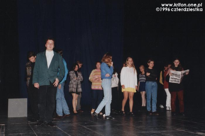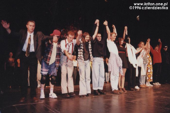 Przedstawienie miało swoją premierę chyba w czerwcu 1996, choć nie jestem tego pewien. Wystąpiliśmy z nim m.in. na Festiwalu Gaude Fest. W projekt zaangażowane było ponad czterdzieści osób, co było jednym ze znaczeń naszej nazwy. To, że księdzu Sewerynowi udało się zjednoczyć tyle osób wokół jednej idei i doprowadzić wszystko do szczęśliwego końca było na pewno jego wielkim sukcesem! Były też głosy krytyki i pewnie było w nich sporo racji, ale przecież my nie aspirowaliśmy do międzynarodowych konkursów! Zresztą mogę mówić tylko za siebie, a dla mnie była to po prostu wspaniała przygoda z teatrem.
