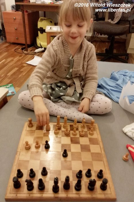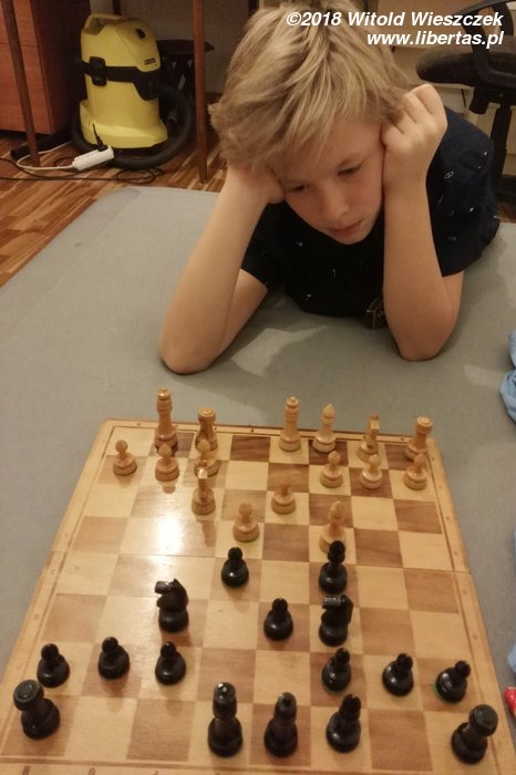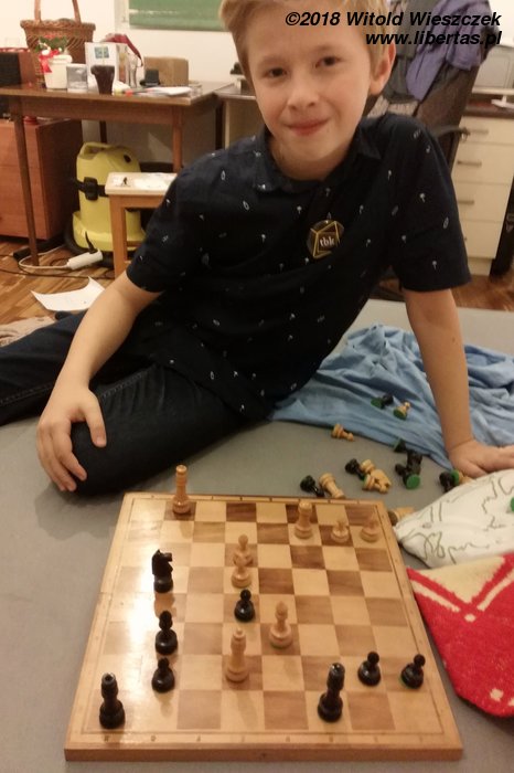 Już chyba kiedyś o tym pisałem – nigdy nie dawałem swoim dzieciom forów w żadnych grach. Ze wstydem jednak przyznaję, że czasem swoich młodszych przeciwników nie doceniam, czasem już mi się wydaje, że partia jest wygrana, tracę czujność i dup. Mat jak w mordę strzelił. Gratuluję! Jeśli się nie mylę, Jerem wygrał dzisiaj ze mną po raz drugi w życiu. Od teraz będę uważniejszy!