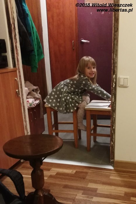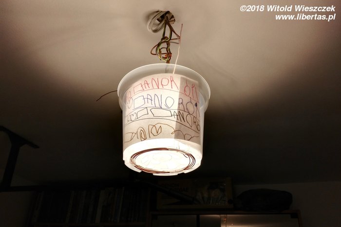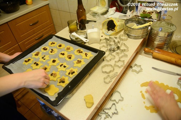 Już na początku grudnia robimy tradycyjne świąteczne kruche ciasteczka. Robimy też nową, prowizoryczną i zupełnie nieświąteczną lampę sufitowo-wiszącą z wykonanymi własnoręcznie przez Dusię zdobieniami. Dzięki nowoczesnym technologiom Jerem czasem ma wąsa, a czasem wręcz przeciwnie.