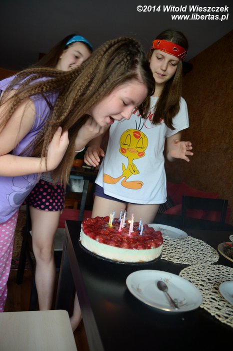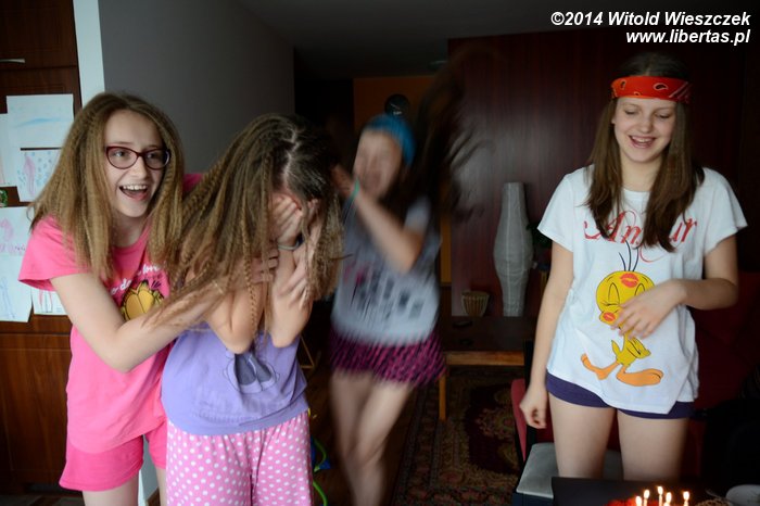 Gdy Maja była malutka, panowała moda na urodziny w McDonaldzie, skąd po dwugodzinnej imprezie dzieci wracały z pomalowanymi twarzami. Czasy się jednak zmieniają i teraz urodziny wyglądają zupełnie inaczej. Czternaste urodziny Mai musiały być już nawet imprezą dwudniową! Pierwszego dnia dziewczynki bawiły się w zakład fryzjerski. Cały dzień spędziły w łazience, robiąc sobie fale na włosach. Urządzenie do takiego falowania miały tylko jedno, więc trwało to naprawdę długo! No ale udało się i następnego dnia w nowych fryzurach i piżamach (to chyba też jakaś nowa moda) zjadły urodzinowy tort.
