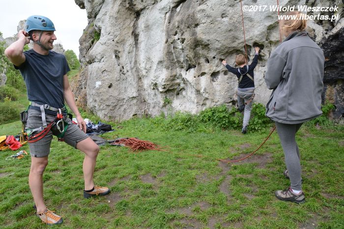 Końcówka maja, a temperatury nadal nas nie rozpieszczają, ale remontowe zmęczenie coraz bardziej daje mi się we znaki, więc każdy, choćby skromny wyjazd, to zastrzyk dobrej energii. Jedziemy do Łutowca. Humory nam dopisują, a skały stoją na swoim miejscu. Jak to dobrze, że jest na świecie coś względnie stałego! Taki punkt odniesienia.