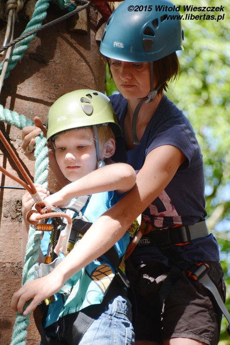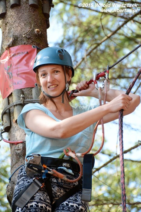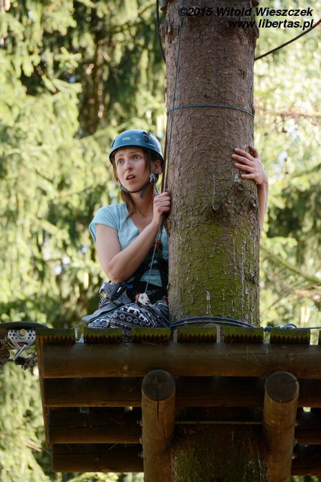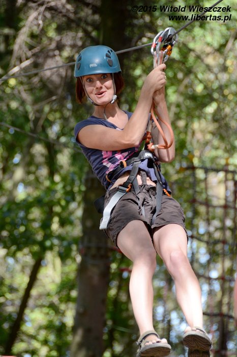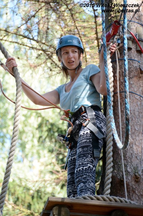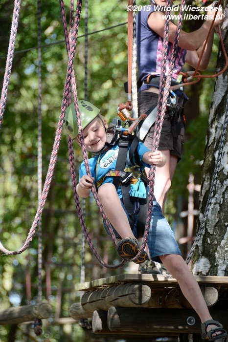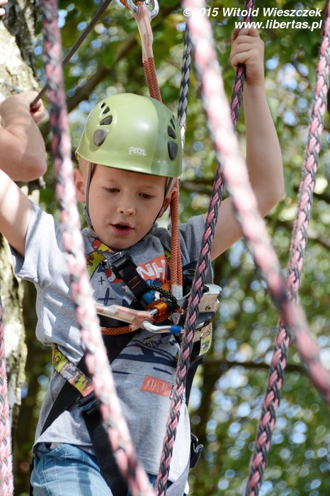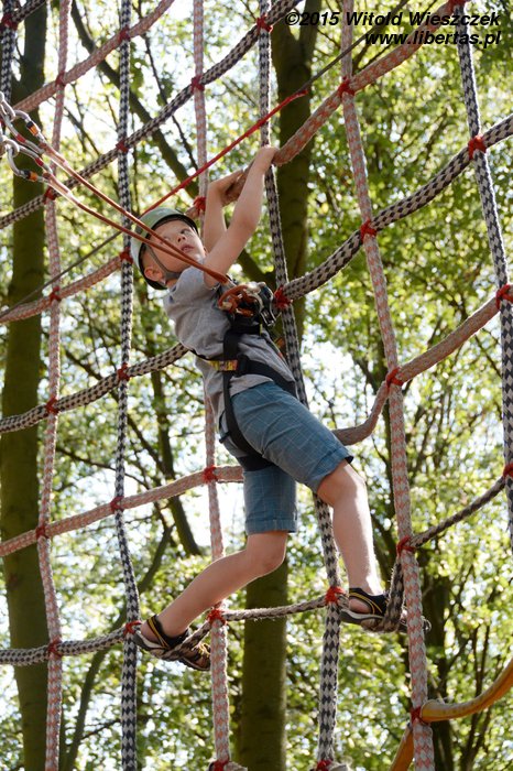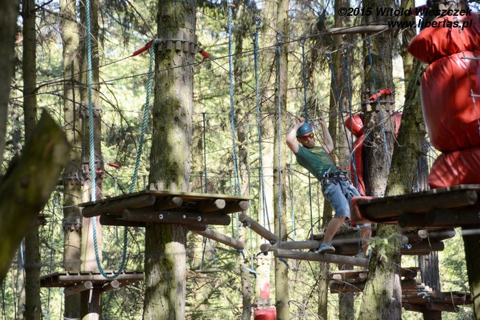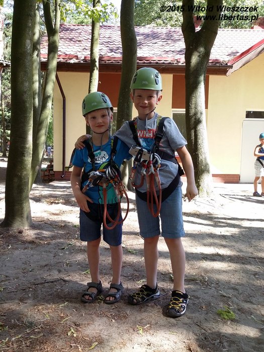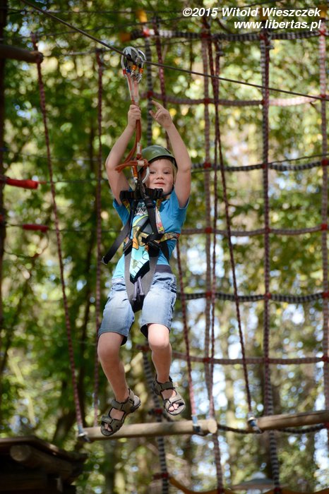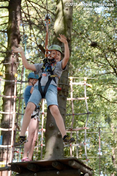 Dzień dokończyliśmy w Parku linowym. Ja się bałem. Takie wysokości to nie dla mnie! Nie będę skakał po sznurkach jak jakaś małpa. Z tego można na pewno spaść, a te śmieszne kaski nie wyglądają poważnie. Popatrzę sobie z dołu.