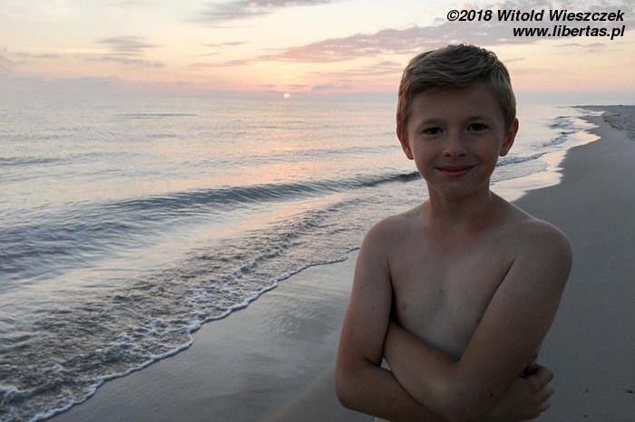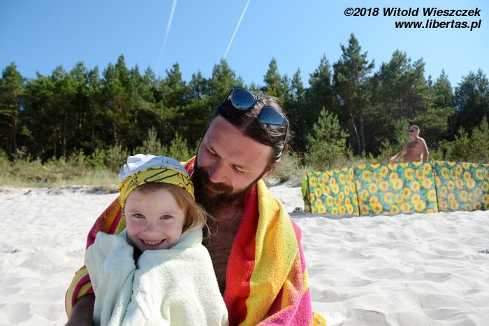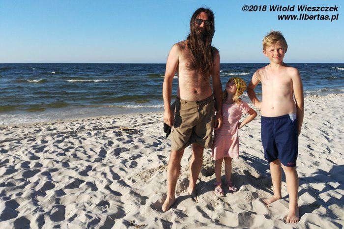 Jak zwykle staram się tak zaplanować podróż, by móc przywitać Bałtyk o wschodzie słońca, przeważnie dojeżdżam jednak przed czasem, więc jest jeszcze w samochodzie czas na krótką drzemkę. Potem bierzemy wszelkie niezbędne plażowe akcesoria i dobrze znaną drogą udajemy się na plażę, gdzie wraz z pierwszymi promieniami słońca 26 dnia lipca cała nasza piątka wita się z Bałtykiem. Dzień dobry!