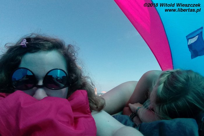 Nie pamiętam, żebym kiedykolwiek trafił nad naszym morzem na taką pogodę. Ale nie narzekamy! Budujemy zamki, spacerujemy, opalamy pupy, skaczemy przez fale, gramy w kendamę, robimy sobie głupie lub jeszcze głupsze zdjęcia i jest... Dobrze, a nawet bardzo dobrze! Szkoda tylko, że następnego dnia musimy się rozstać z Asią. Pożegnalną imprezkę urządzamy sobie 27 lipca. Tej samej nocy mogliśmy zaobserwować zaćmienie księżyca.
