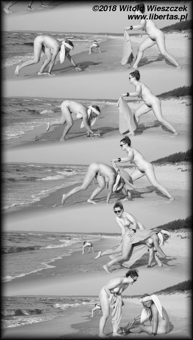 Ostatniego dnia rano wyprowadzamy się z naszych pałaców, wrzucamy wszystko do samochodu i po raz ostatni jedziemy na plażę. Zamierzamy spędzić tu cały dzień, żeby nasycić się morzem na cały rok. Bawimy się, wygłupiamy, robimy ostatnie sesje zdjęciowe. Z jednej strony jeszcze nigdy tak długo się Bałtykiem nie cieszyłem i nie mogę powiedzieć, żebym się morzem nie nasycił, a z drugiej strony, jednak żal wyjeżdżać.