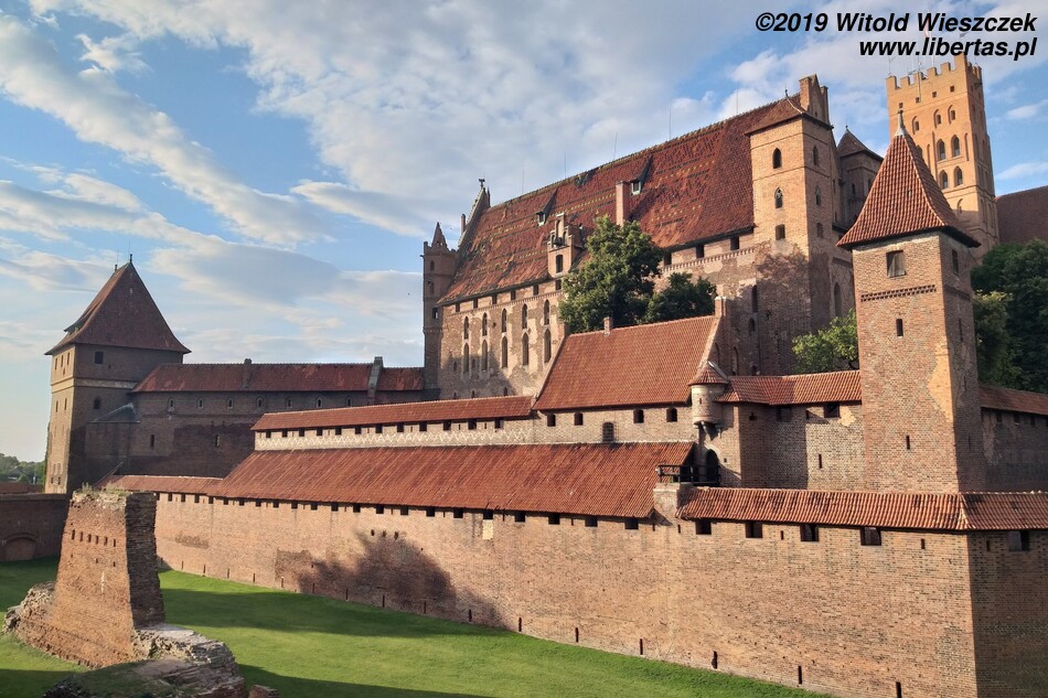 Bryła zamku nawet w nocy robi ogromne wrażenie, nic dziwnego, jest to największa ceglana twierdza średniowiecznej Europy, twierdza niemal doskonała! 25 lipca 1410 roku rozpoczęło się jej oblężenie przez wojska Władysława Jagiełły. Dwa miesiące walk nie przyniosły jednak rezultatu. Zamek nigdy nie został zdobyty, ale 8 czerwca 1457 roku Polacy przekupili broniących twierdzy najemników, którzy nie mogąc się doczekać wypłaty od Krzyżaków, oddali zamek bez walki. Najprawdopodobniej był to jedyny sposób, by go zdobyć. Twierdza składała się z trzech zamków, a prawie każdy pierścień murów miał około 23 metrów wysokości i ponad 2,5 metra grubości u szczytu. Dobrze zaopatrzona twierdza obsadzona względnie niewielką ilością żołnierzy mogła się skutecznie bronić nawet kilka lat, co w średniowieczu czyniło ją praktycznie nie do zdobycia. Dzisiaj wystarczy kupić tani bilet, a taki Kazimierz Jagiellończyk za wejście do zamku zapłacił 190 tys. florenów (ok. 660 kg złota)! Jednym słowem okazja i darmocha! Według informacji zwiedzanie zamku powinno zająć około 90 minut. Wolne żarty! Spędzamy w nim ponad cztery godziny, a i tak wychodzimy nienasyceni! Polecamy!