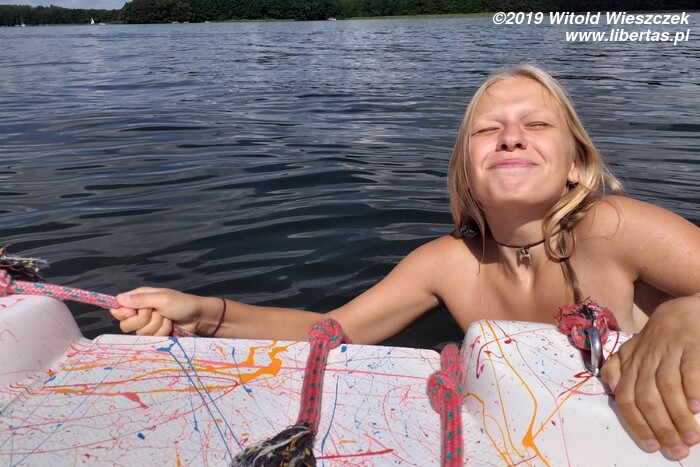 Nasze zwiedzanie tradycyjnie obejmuje dobry browar, stare kościoły i ciekawe muzea. W Słupsku natrafiliśmy na świetną wystawę Witkacego, w Olsztynie ze zdziwieniem wpadliśmy na wystawę, gdzie roiło się od kutasów. Pomyślałem sobie, że tak malować to i ja potrafię i chciałem za darmo, w czynie społecznym kilka kutasów i cycków domalować, ale pani z obsługi strasznie się piekliła, że nie wolno. I zrozum tu człowieku sztukę! Niepowodzeniem zakończyły się również nasze poszukiwania tutejszej plaży naturystycznej, która okazała się kawałeczkiem łączki z zamulonym i nieprzyjemnym zejściem do jeziora. Rozwiązaniem okazało się wynajęcie rowerka. Wpłynęliśmy na mokrego przestwór oceanu, wóz nurzał się w zieloność i jak łódka brodził... Resztę niech opowiedzą zdjęcia.
