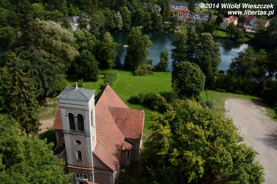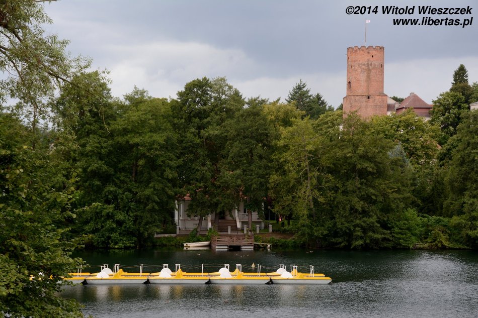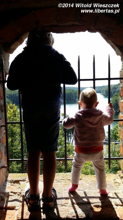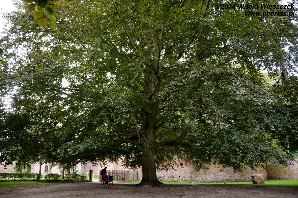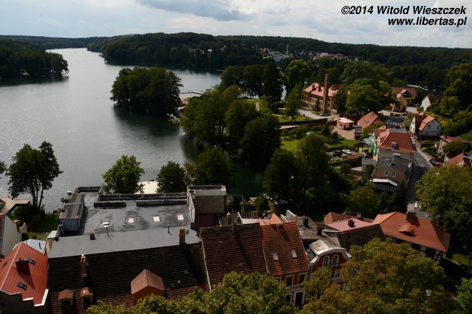 Pogoda nie pozwalała niestety na pływanie po jeziorze, ale nie była aż tak zła, żeby zupełnie sparaliżować nasze plany. Odwiedziliśmy zamek joannitów, a właściwie stary park położony za zamkiem. Wrażenie robią bardzo stare drzewa o imponujących rozłożystych koronach, które nawet przez chwilę dały nam ochronę przed deszczem. Ten niestety nie przechodził, postanowiliśmy więc przeczekać go w zamkowej kawiarni, zresztą bardzo przyjemnej i niedrogiej. Weszliśmy też na wieżę, z której roztacza się panorama na wieś i otaczające ją jeziora.