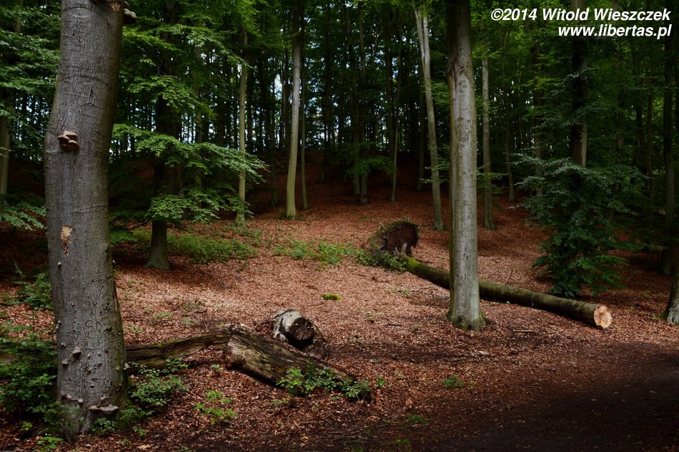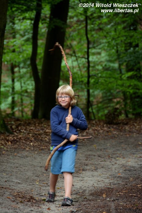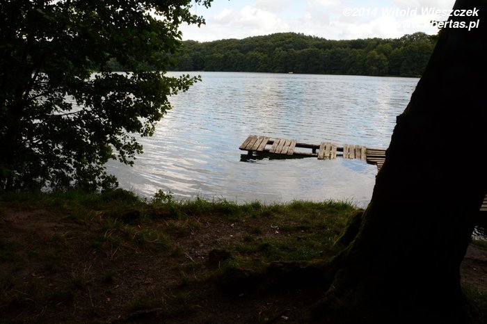 Gdy przestało padać rozpoczęliśmy spacer brzegiem jeziora. Początkowo ścieżka była szeroka i bardzo przyjemna, tak że przez chwilę miałem nawet ambitny plan, by obejść jezioro dookoła. Z wózkiem nie jest to jednak takie proste, a podczas deszczu staje się doświadczeniem wręcz ekstremalnym. Powalone drzewa blokujące ścieżkę i błoto, czasem wręcz bagna, a ostatecznie deszcz, skutecznie przekonały nas do rezygnacji z tego pomysłu. Jednak nawet gdy postanowiliśmy zboczyć ze ścieżki w kierunku Jemiołowa, droga nie okazała się łatwiejsza... Gdy omijaliśmy jedno powalone drzewo, okazało się, że zdecydowanie brakuje mi na wyposażeniu maczety! Naprawdę nie wiem, jakim cudem wyszliśmy z tej dżungli cało!