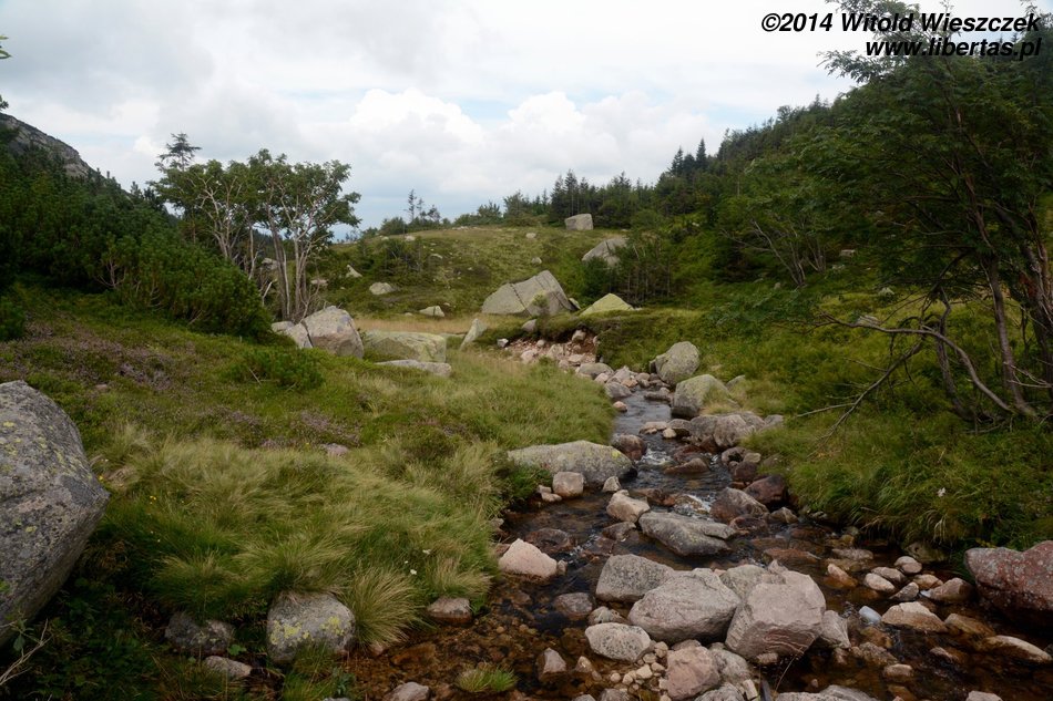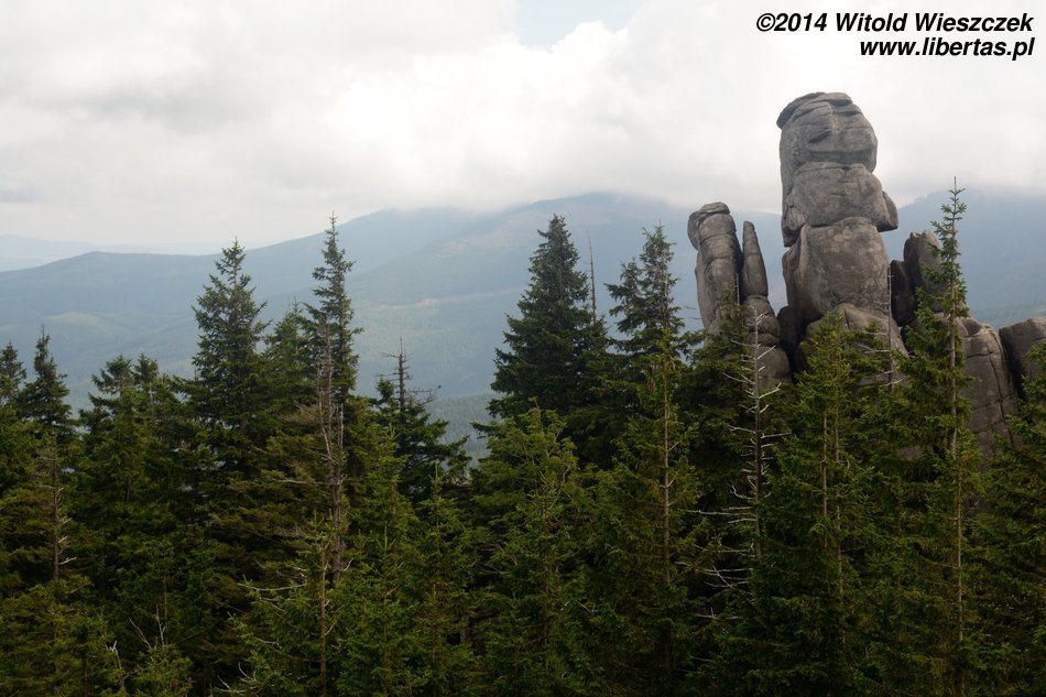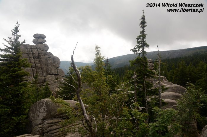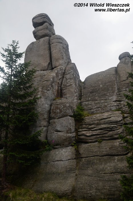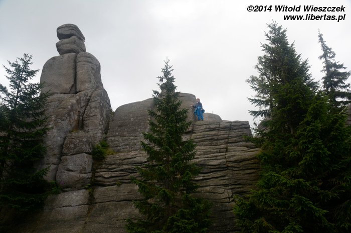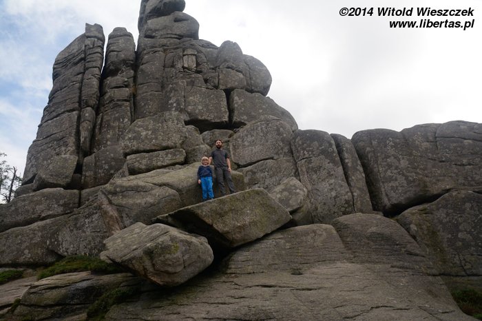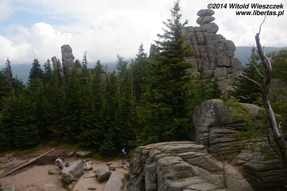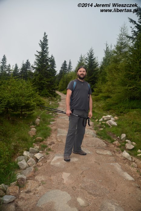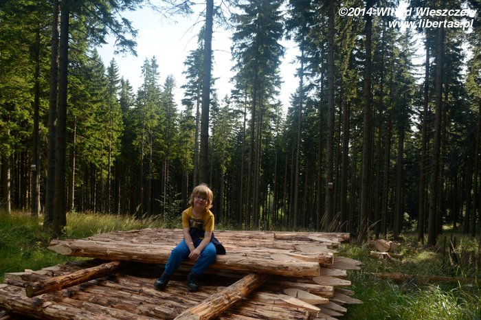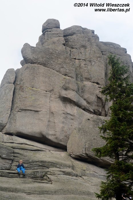 Dzisiaj nie powinno padać. Jemy śniadanie i ruszamy na szlak. Tym razem niebieski w kierunku schroniska Samotnia. Przez pierwszą godzinę Jeremi tradycyjnie marudzi. Dochodzimy do Polany i tam robimy sobie krótką przerwę. Niedaleko stąd są Pielgrzymy, chyba największa taka formacja granitowych skał w Karkonoszach. Proponuję Mai szybki spacer, gdy reszta będzie odpoczywała, ale Mai się nie chce. Nie to nie. Idę sam. Nie sam? Jeremi też chce iść? Nogi już go nie bolą? Bolą, ale przypomniało mu się, że jak bolą, to dobrze, bo to znaczy, że będą mocniejsze. Zuch chłopak. No to idziemy!