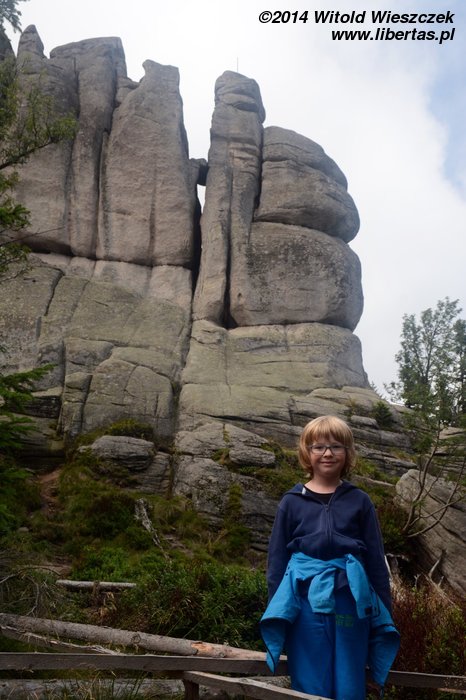 Teraz o dziwo żadnego marudzenia nie ma! Wręcz przeciwnie, Jeremi idzie roześmiany, oczywiście rozgadany i dobrym tempem. Robimy sobie po drodze zdjęcia, rozmawiamy i nawet nie wiem kiedy dochodzimy na miejsce. Tam na każdą skałę musimy wejść, więc trochę nam z tym schodzi i w sumie mija trochę czasu zanim wracamy do leni. Wycieczka udaje się znakomicie.