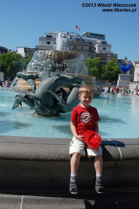 Gdy wszyscy byli już gotowi, zadzwoniłem, by zamówić taksówkę. Szybko okazało się, że angielskiego jednak nie znam, a w każdym razie londyńskiego. Facet w słuchawce wydawał co prawda jakieś dźwięki, ale przypominało to raczej płytę puszczoną od tyłu. Dopiero gdy poprosiłem, by mówił wolniej, udało mi się zrozumieć, że pyta gdzie będzie kurs. Uff... Railway station. Kupno biletu u przesympatycznego kasjera poszło już znacznie sprawniej i po godzinie oraz jednej przesiadce dotarliśmy na Trafalgar Square.