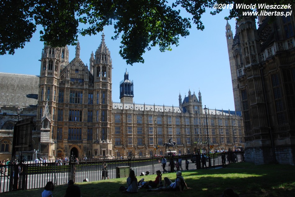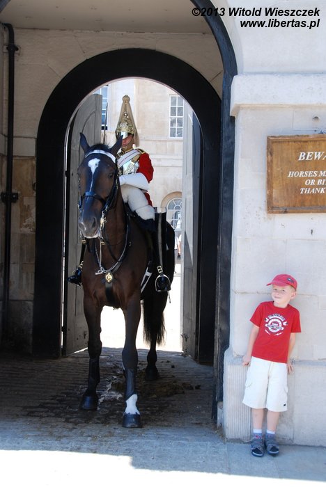 Na chwilę zatrzymaliśmy się przy Koszarach Straży Konnej, gdzie zupełnie przypadkiem trafiliśmy na zmianę warty, czym oczywiście Jeremi był zachwycony. Później rzuciliśmy okiem na leżący po drugiej stronie budynku plac defilad i wróciliśmy na Whitehall. Przeszliśmy obok słynnej na całym świecie Downing Street 10, gdzie tradycyjnie urzęduje premier Wielkiej Brytanii i w końcu doszliśmy do Pałacu Westminsterskiego oraz leżącego naprzeciw opactwa.